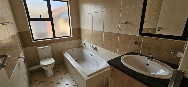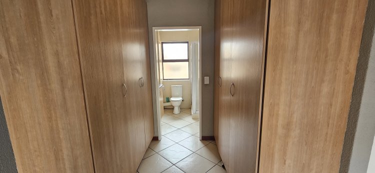 This first floor unit features an open plan lounge/dining area and cozy kitchen with ample cupboards, 2 bedrooms with built in cupboards and 2 bathrooms (main en-suite).