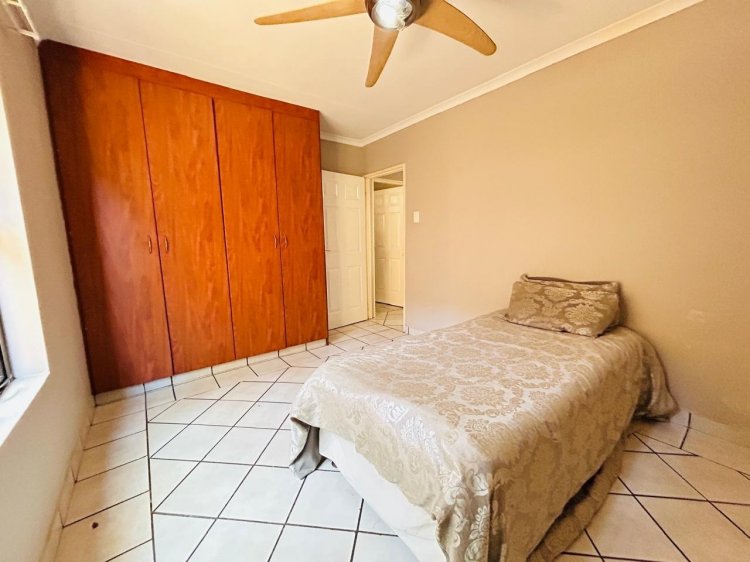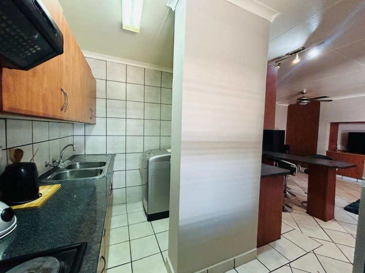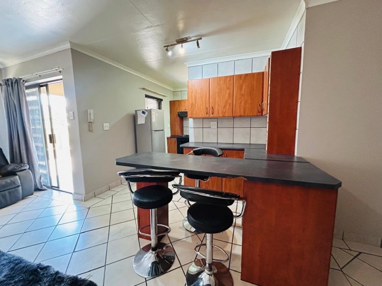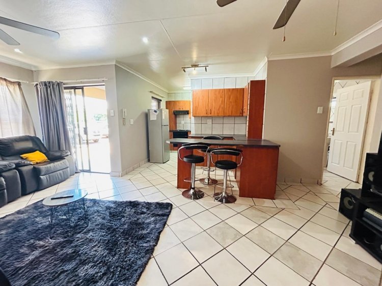 Key Features: • Central town location • Open-plan kitchen, dining & living area • 2 bedrooms • 1 full bathroom (shower + bathtub) • Intercom, electric fence & alarm system • Patio with built-in braai • Laundry line • 950L backup water tank + pressure pump • 2 undercover parking bays • Prepaid water & electricity