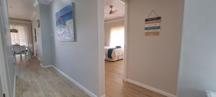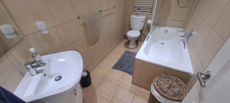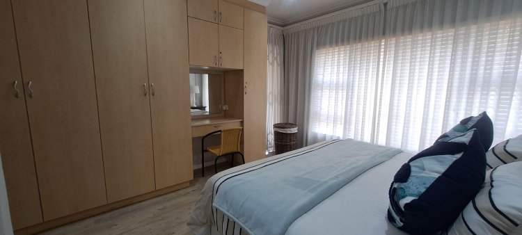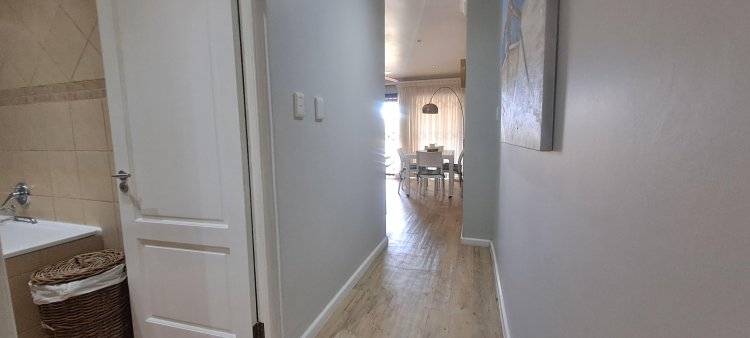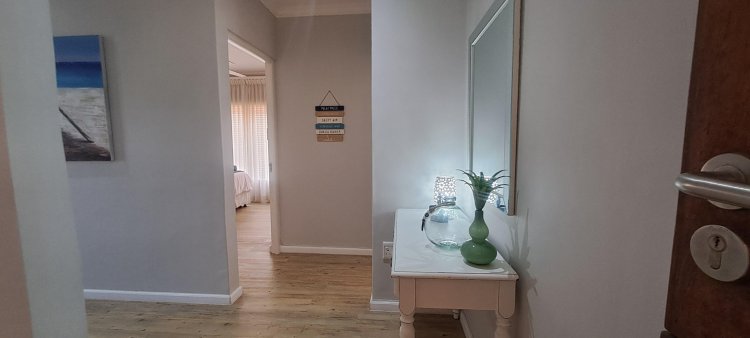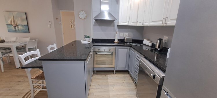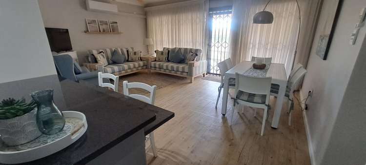 This stylish ground-floor unit offers : Three airy spacious bedrooms with ample cupboards. Two modern bathrooms, including a main en-suite. Modern open-plan kitchen, fitted, fitted with granite counter tops. Breakfast nook, Scullery and Laundry area. Wood laminate flooring and modern downlights throughout. Spacious open-plan Lounge and Dining area, leads effortlessly onto the large covered patio. Built-in braai, ideal for entertaining your loved ones and friends. Wheel-chair friendly.