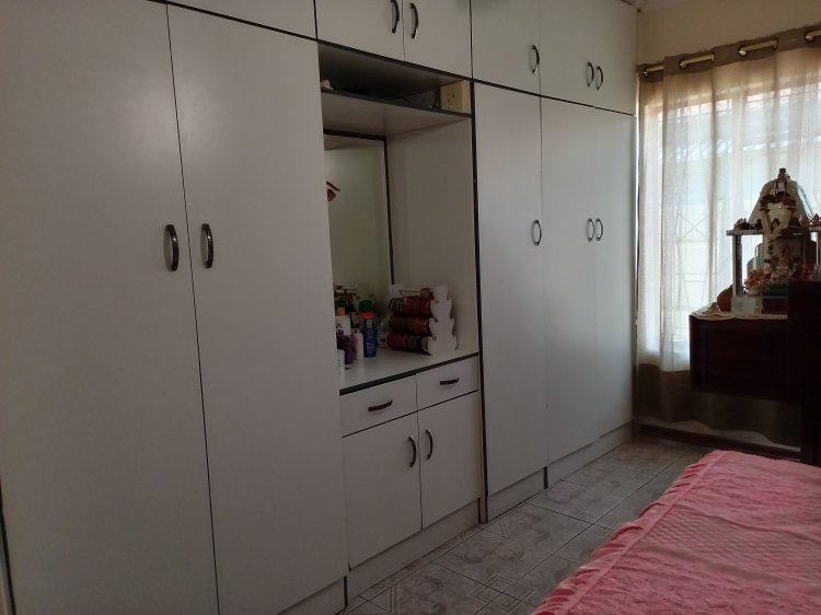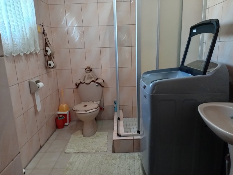 This residence features three generously sized bedrooms, each equipped with built-in cupboards. The main bedroom boasts an en-suite bathroom, while the family bathroom includes a separate toilet. You'll also appreciate the convenience of an outdoor bathroom complete with a shower, basin, and toilet.