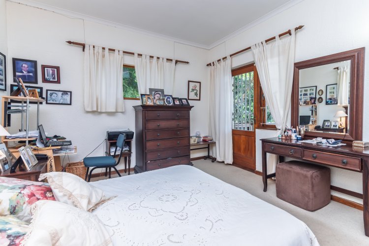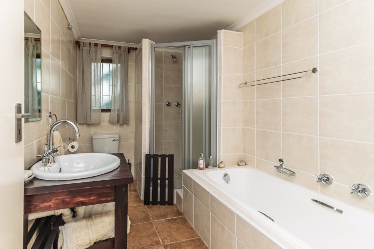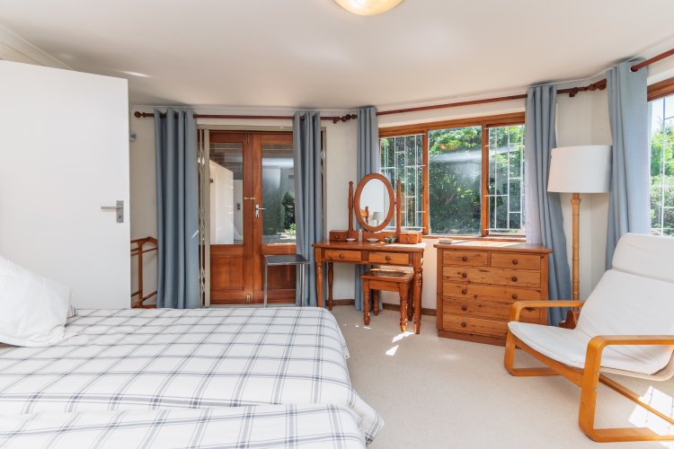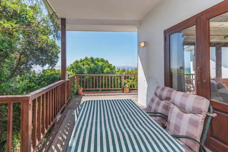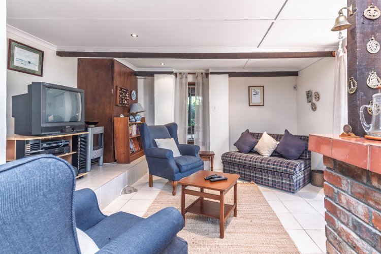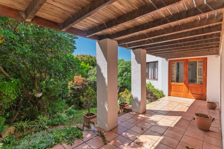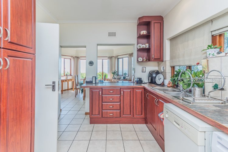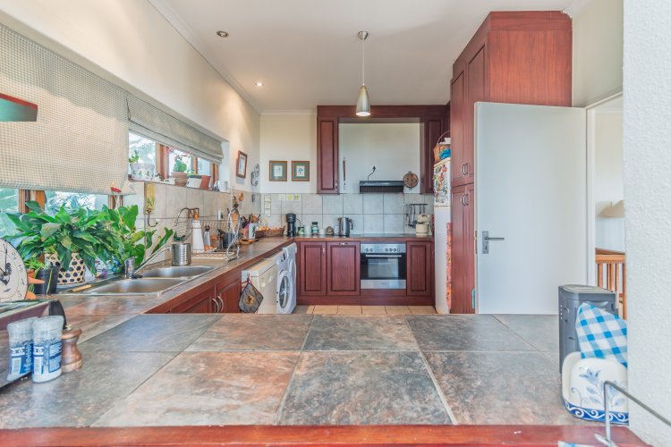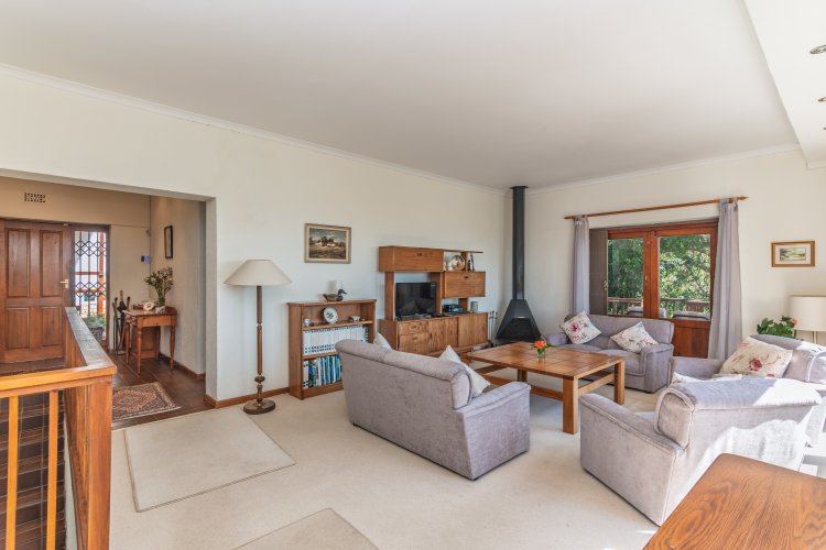 Set in a gorgeous, well-established garden, with sparkling open views across False Bay, you can see passing whales from this 3 bedroom home offering great flow and generous, comfortable accommodation. The top floor is entered from the driveway and comprises a main bedroom, living room (with fireplace) and dining room (easily seating 10) all opening onto the top deck, along with a full bathroom, second bedroom and kitchen. On the lower level you'll find a second living room/den as well as a spacious bedroom and bathroom which is perfect for your guests. Both decks are sheltered from the prevailing winds on the north side and light streams in through the sea facing windows. There is an automated single garage with a carport alongside, and automatic gates to drive in.