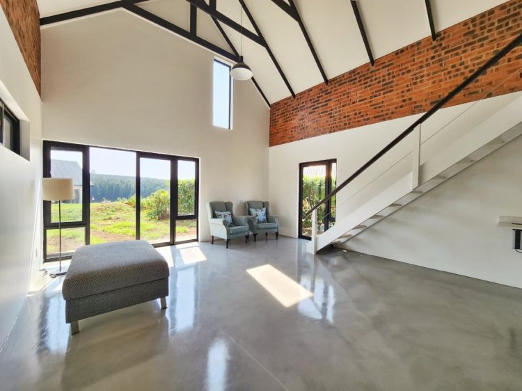This brand-new home combines modern flair with easy, relaxed Midlands living. The double-volume ceilings with exposed rafters fill the open-plan lounge, dining, and kitchen area with natural light, creating a warm and inviting space at the heart of the home. The kitchen, with its central island and separate scullery, is designed for both functionality and entertaining. The home features two well-appointed bedrooms on the ground floor, with the main bedroom offering direct access to the outdoor firepit area. Upstairs, the spacious loft serves as a versatile retreat, ideal as a guest suite, teen pad, or even a private home office. A mezzanine lounge adds another flexible living zone, giving the home character and options to suit your lifestyle.