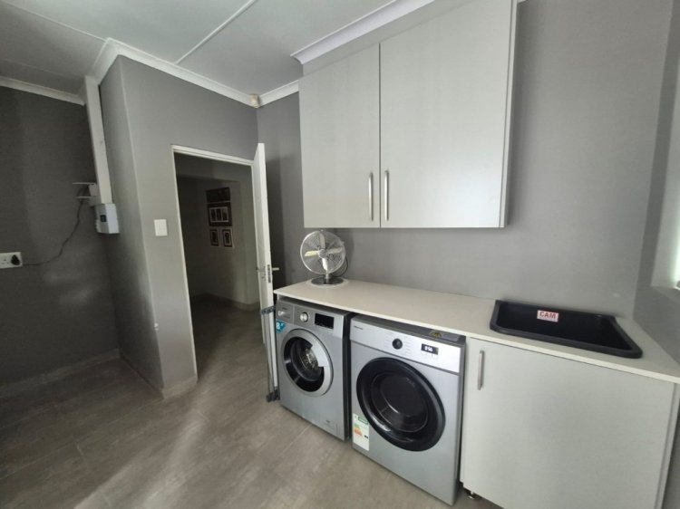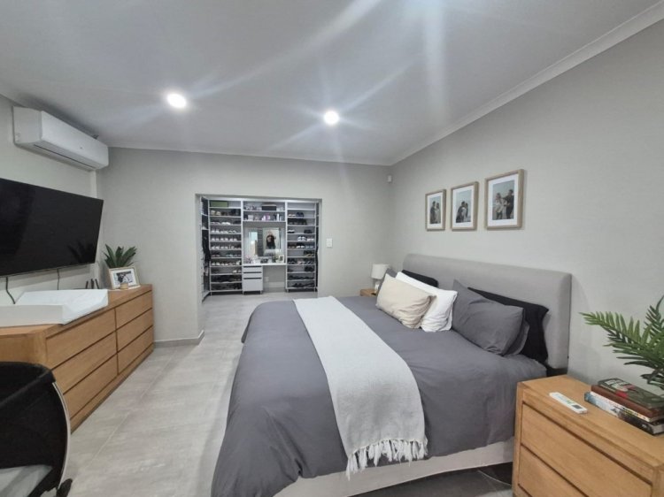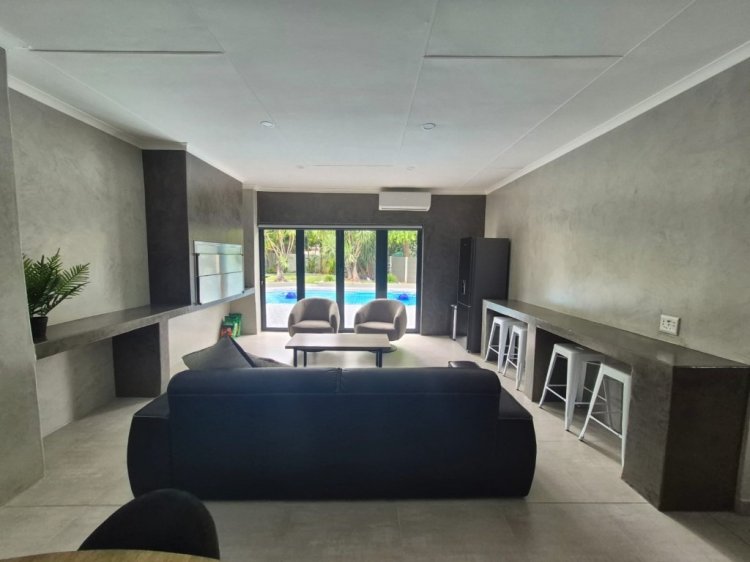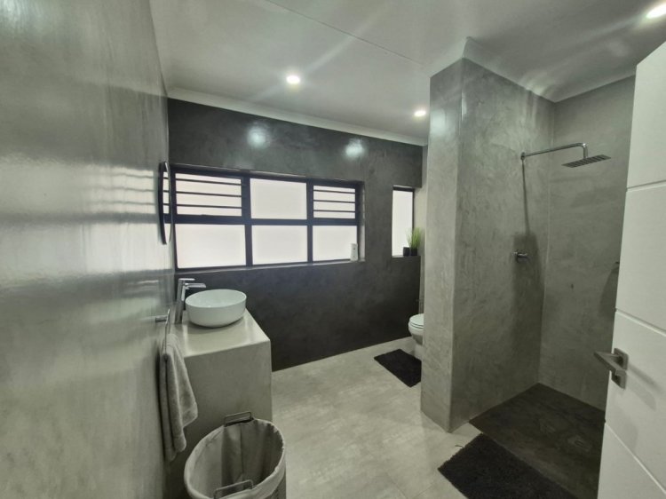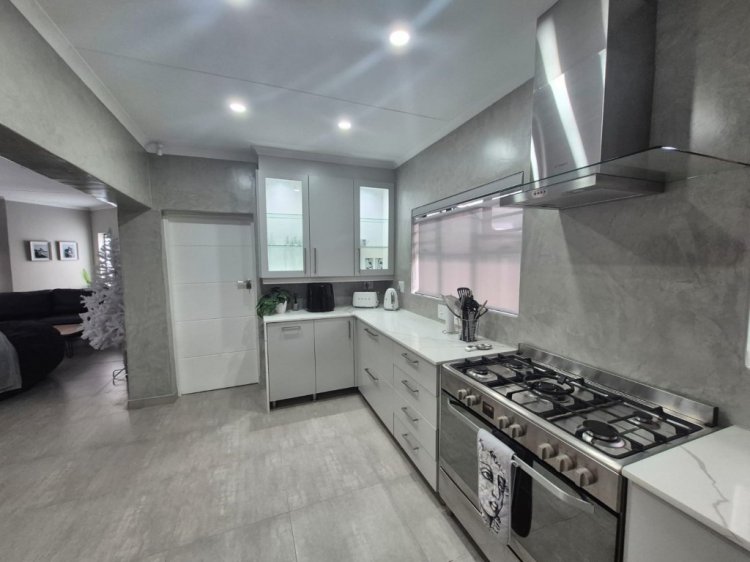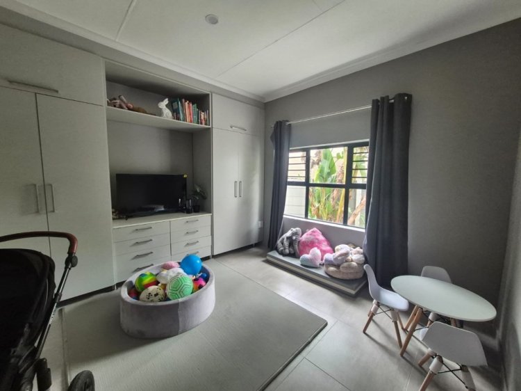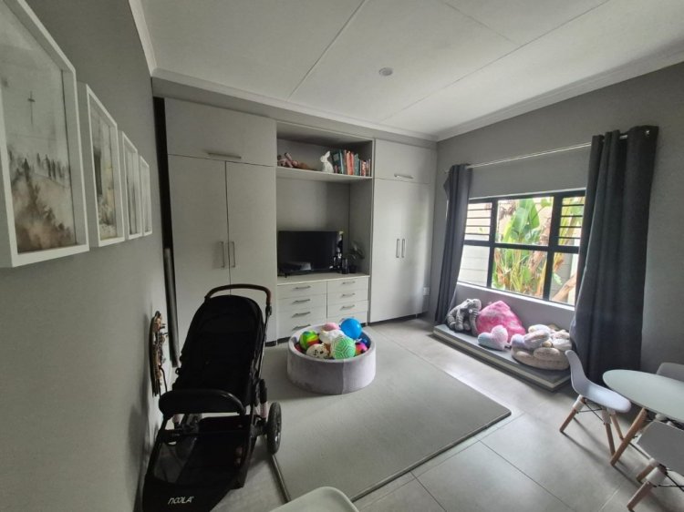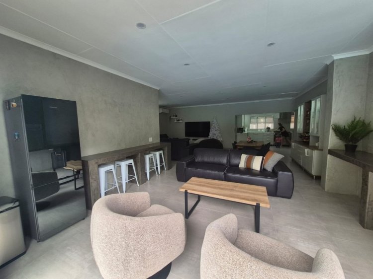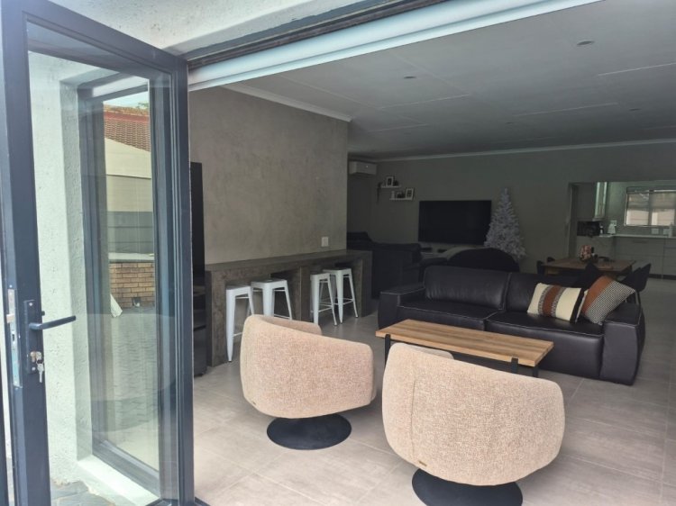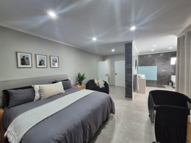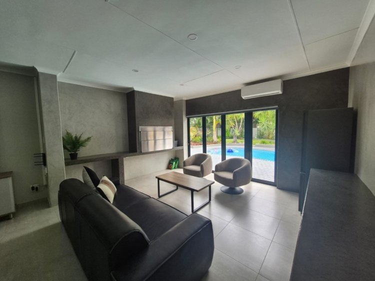 Sole Mandate Step into the stunning contemporary residence designed for both comfort and style. The home boasts 3 spacious bedrooms and 2 elegant bathrooms, perfectly suited for family living. The heart of the house is its open-plan kitchen with a gas stove, quartz countertops, and lounge, seamlessly flowing into a dedicated braai area ideal for entertaining guests or enjoying a relaxed evening at home. With its sleek finishes, thoughtful layout, and modern design, this home combines functionality with sophistication, making it a perfect retreat for contemporary living. This home doesn't just stop at smart living and elegant finishes; it also includes an indoor golf area, perfect for practicing your swing year-round or entertaining guests with a unique experience right at home. A laundry room adds convenience, while a versatile study or additional room offers flexibility for a home office, gym, or guest space. The eco-friendly power setup, smart automation, security features, and luxury finishes, while also making clear the flexibility of the rooms. The pool area is designed as a private retreat, blending relaxation with entertainment. A sparkling swimming pool sits at the center, surrounded by a neat paved area perfect for sun loungers and outdoor gatherings. At night, smart-controlled outdoor lighting creates a warm ambiance, while the surrounding garden is maintained by wifi controlled irrigation system, which adds greenery and freshness. The pool area is both practical and stylish, offering a tranquil escape for family and elegant entertaining. LUXURY FINISHES -265 SQM Open plan residence combines cutting edge sustainablility with elegant design. -Powered by a 15kv Inverter system -25kw lithium iron batteries and 16 x 550w solar panels, the home ensures uninterrupted energy efficiency. - Smart living is at your fingertips with Wi-Fi-controlled geyser, pool pump, exterior lighting, and air conditioner across the property. -Security alarm system with an electrical fence and camera system.