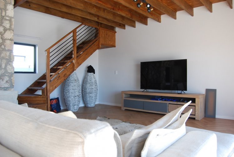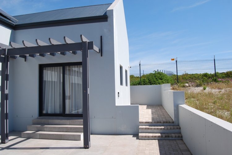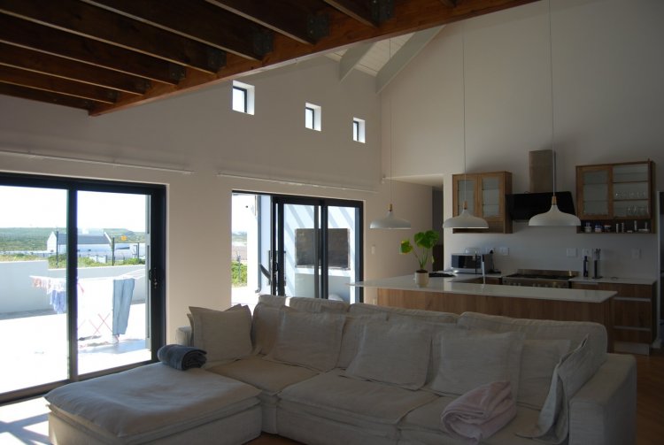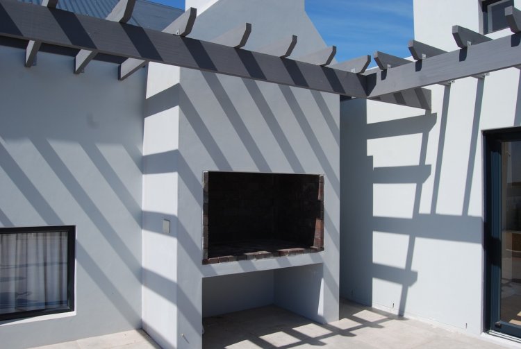 Inside, each of the three bedrooms comes with its own en-suite bathroom, while an additional guest bathroom ensures convenience for visitors. The home features a loft study/office, perfect for working from home, as well as a built-in fireplace for cosy evenings. Entertain with ease at the outdoor braai area, designed for relaxed West Coast living.