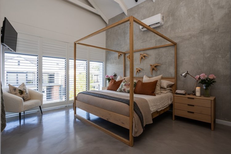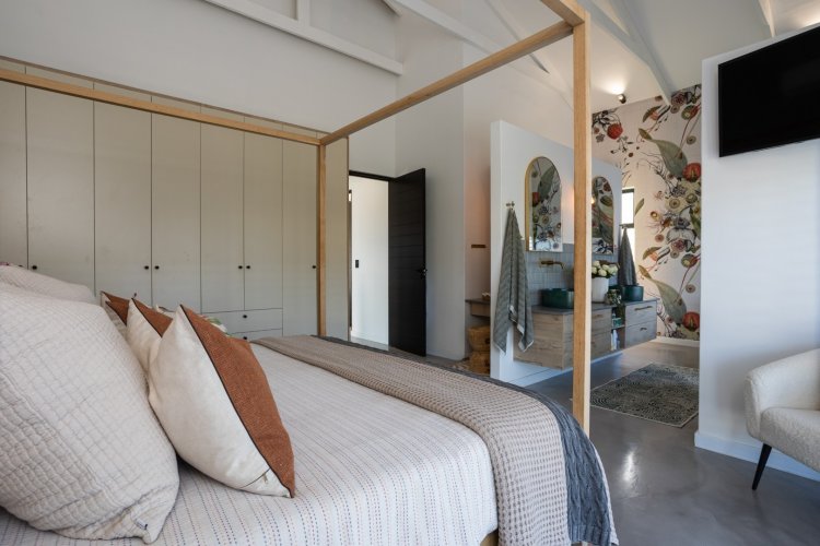 The three bedrooms offer private retreats, each one thoughtfully designed. The main suite stands out — a sanctuary where mornings begin with sunlit views of the mountains and evenings end in complete quiet. It’s the kind of room that invites you to exhale.