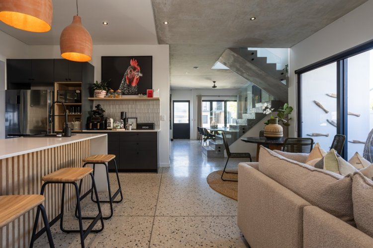 Beyond this space, the heart of the home unfolds with a calm, modern elegance. Clean architectural lines, generous windows, and soft natural light come together to create an interior that feels both refined and welcoming. The open-plan living areas connect seamlessly, encouraging family moments as much as stylish entertaining. Whether you're cooking, relaxing, or hosting, the space adapts effortlessly.