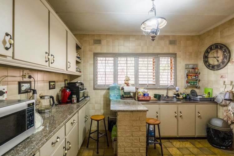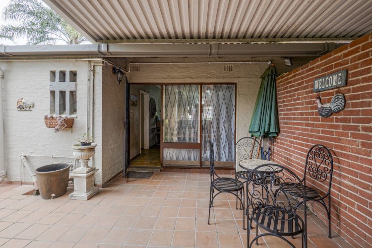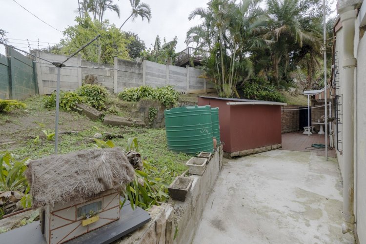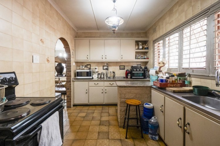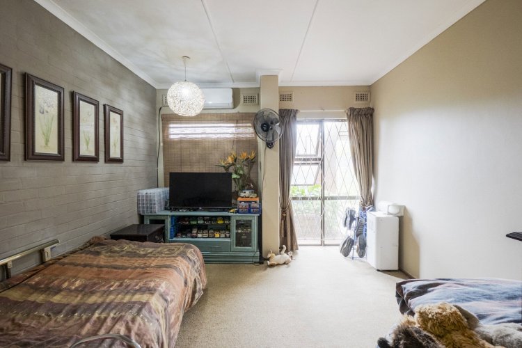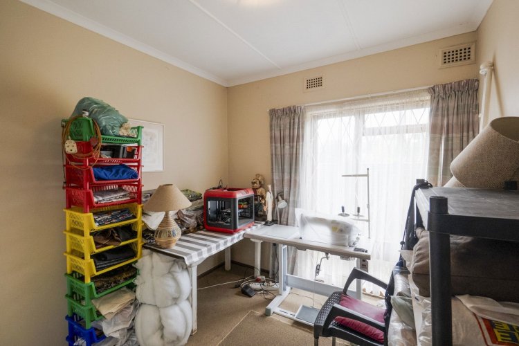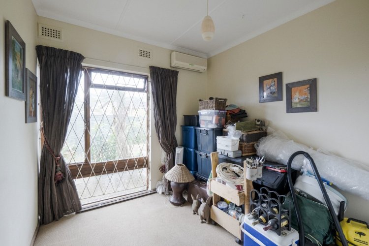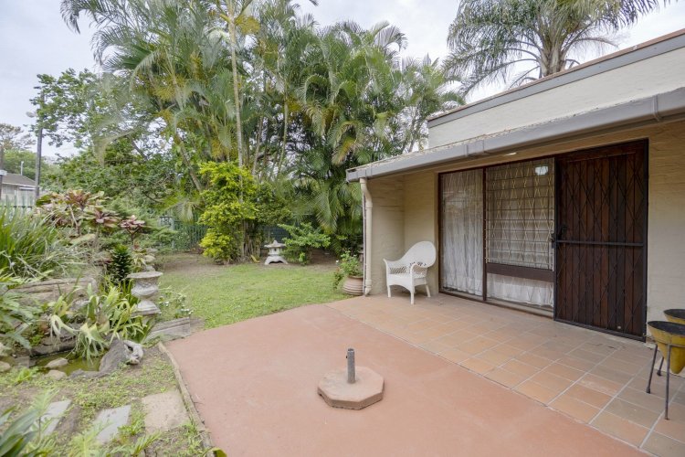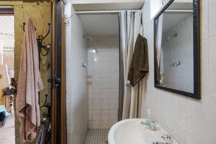 There is one full bathroom (bathtub, basin, toilet) and an additional separate toilet. Two of the bedrooms feature air conditioning units. The property boasts a spacious, well-maintained garden with a garden shed, two JoJo tanks for water storage, and a fully enclosed perimeter. Security is ensured by an automated sliding gate.