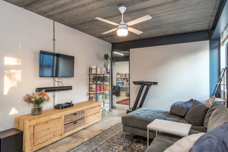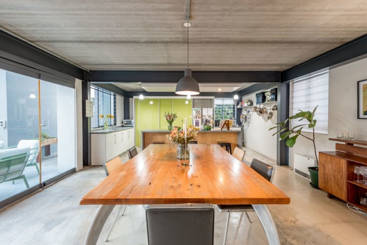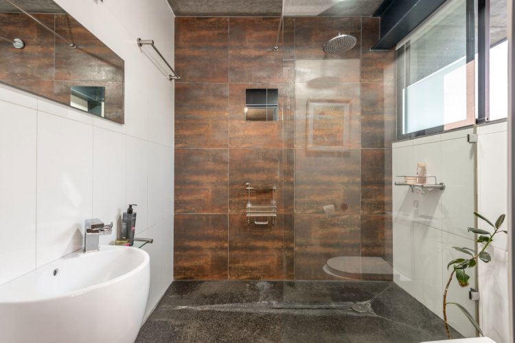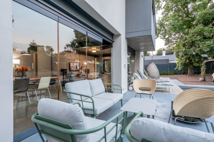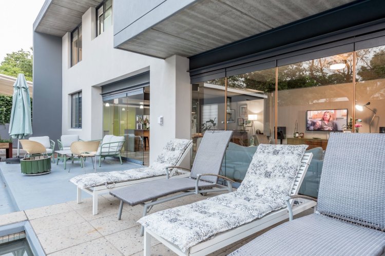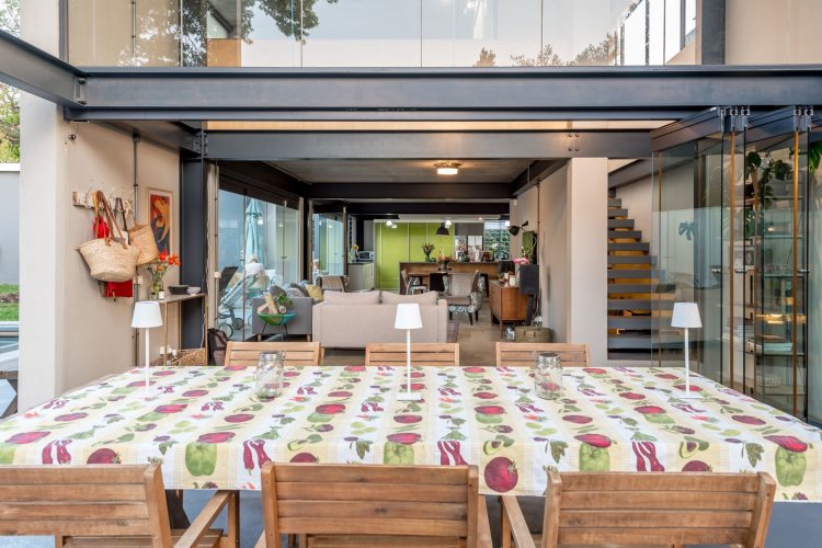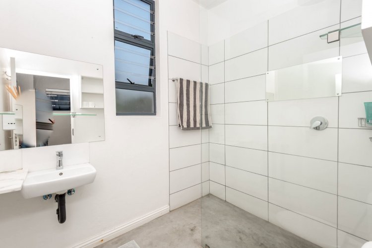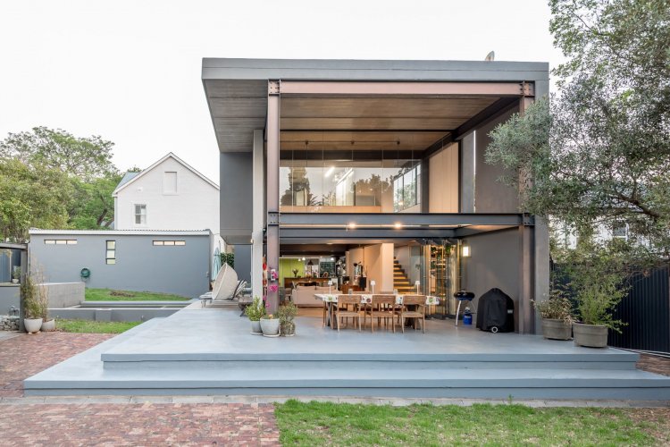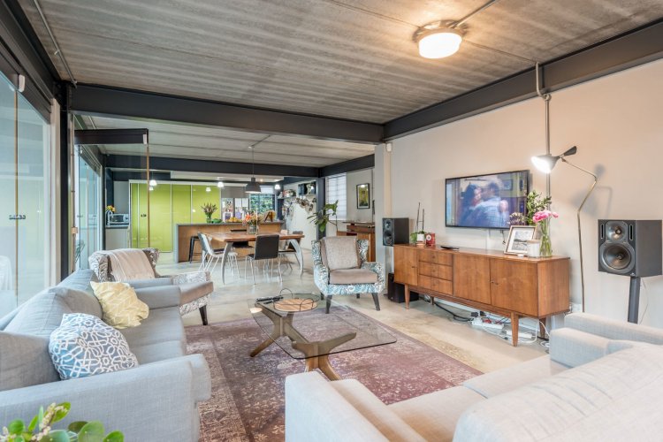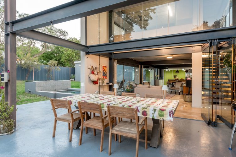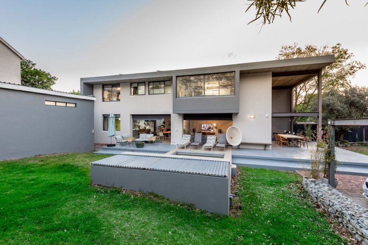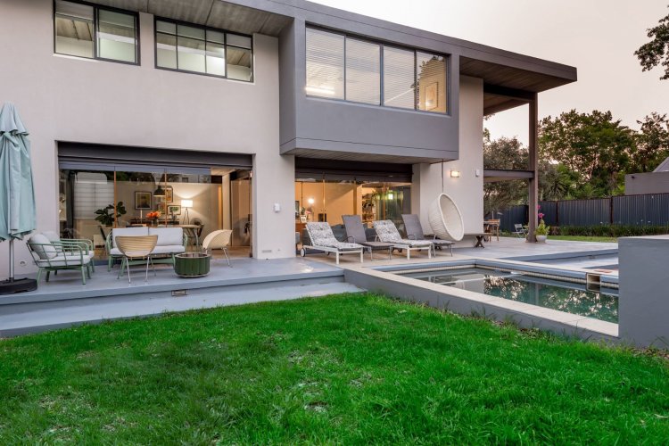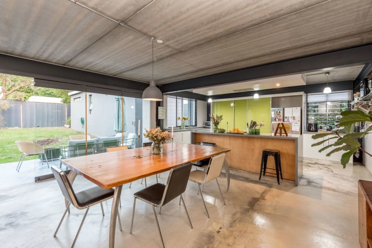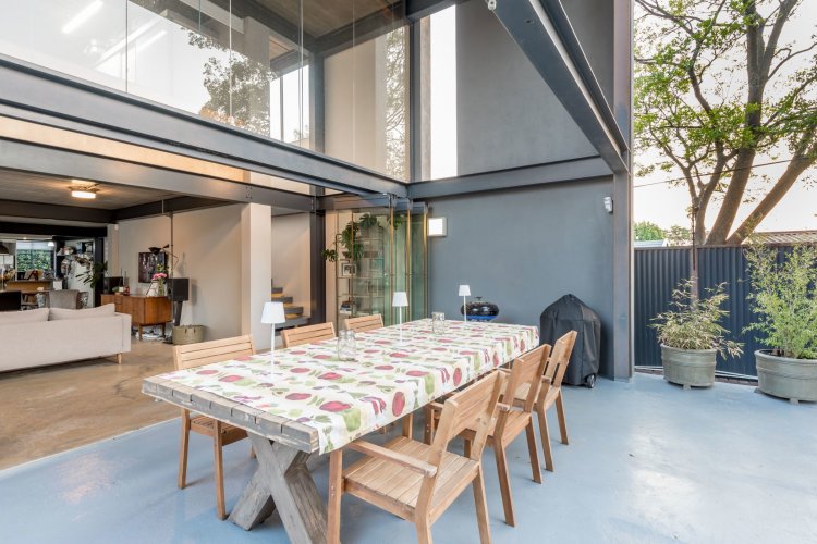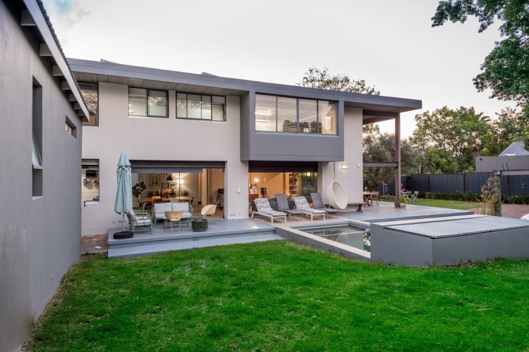 Floor-to-ceiling glass, steel beams and shades of grey. Complete, neat, clean structure. A unique double-storey home set in a quiet, private, panhandle access. Open-plan living and flooded with sunlight. A true statement in style. Private gardens, solar-heated pool, and guest cottage.