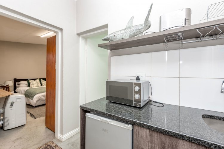 Self-contained guest cottage with kitchenette and bathroom, home office and Keter Darwin storage shed.