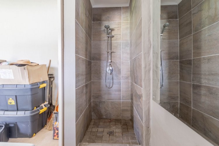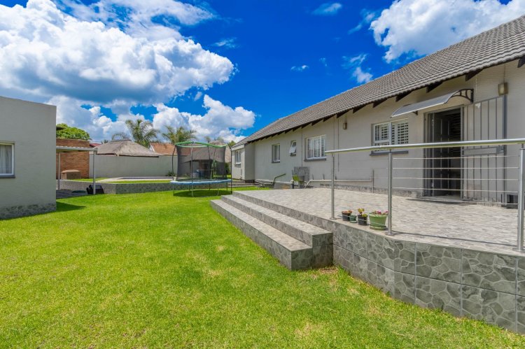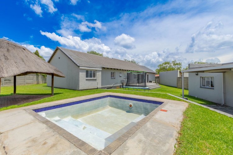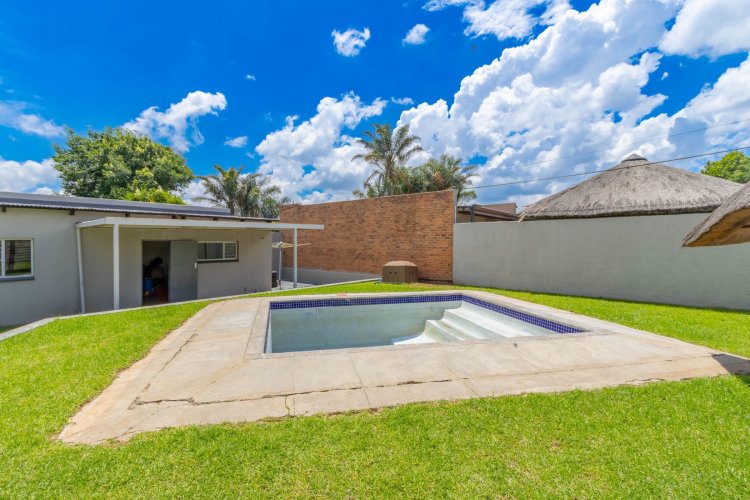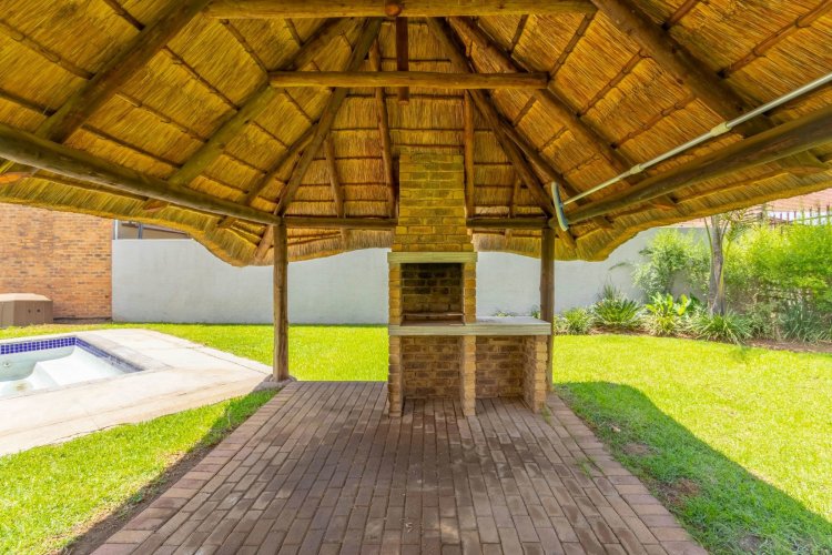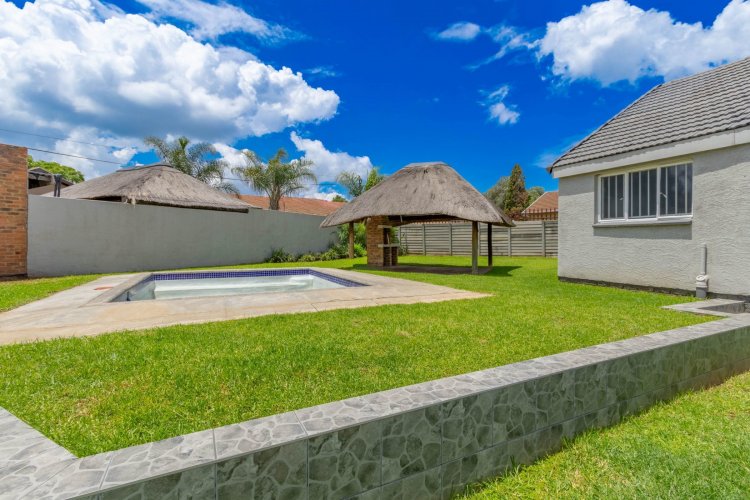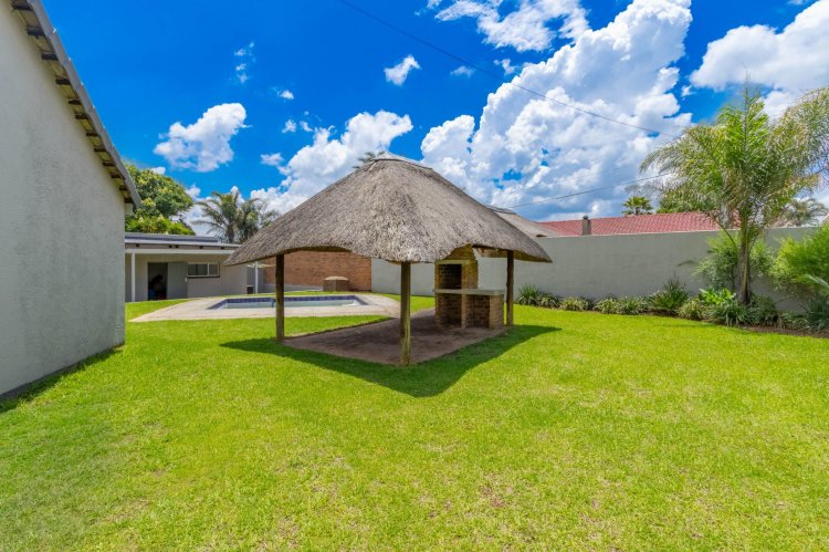 Outside, the backyard offers great space for entertaining. A welcoming lapa with an open braai looks over the splash pool and garden, which wraps around to the front of the property. The studio flatlet—currently used for storage and not photographed—already has a modern bathroom and simply needs a kitchenette and built-in cupboards to finish it off.