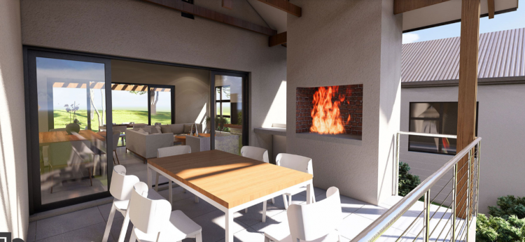 • 3 Bedrooms: Including a luxurious main suite with private en‑suite bathroom. • 2 Bathrooms in Total: Thoughtfully designed for convenience and privacy. • Open-Plan Living: Seamless flow between the living and dining areas, ideal for gatherings. • Modern Kitchen & Scullery: Practical design with ample storage and prep space. • Built-In Braai: Perfect for entertaining and enjoying South Africa’s outdoor culture. • Outdoor Living: Shaded patio plus open patio, creating versatile spaces for relaxation. • Double Garage: Secure, spacious parking with direct access to the home. • 24-Hour Security and controlled entry to the Estate
