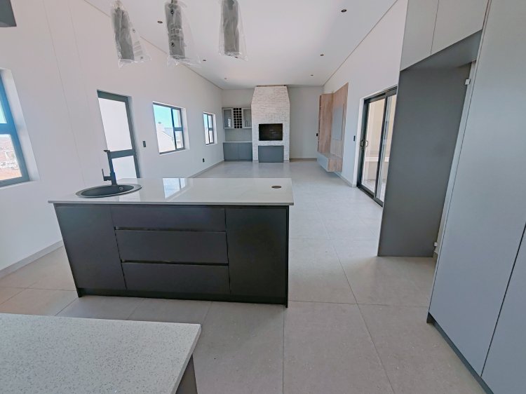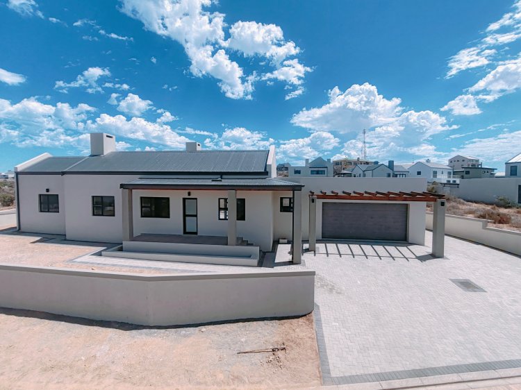 The open-plan living areas flow seamlessly into a well-designed indoor braai area, complete with extra cabinetry for added convenience, making hosting easy and enjoyable. An additional outdoor braai extends the entertainment space, ideal for West Coast living.