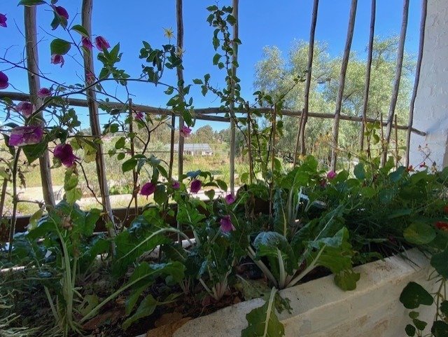 • An impressive collection of fruit and nut trees, including fig, lemon, naartjie, pomegranate, guava, apple, plum, pear, cherry, olive, and more • A thriving vegetable and herb garden, rich in seasonal produce • Indigenous and shade trees like blue gum, wild elder, and cork oak bring both biodiversity and beauty • A carefully designed permaculture system ensures the garden is not only productive but sustainable — with smart water-saving irrigation and a layout that supports natural cycles