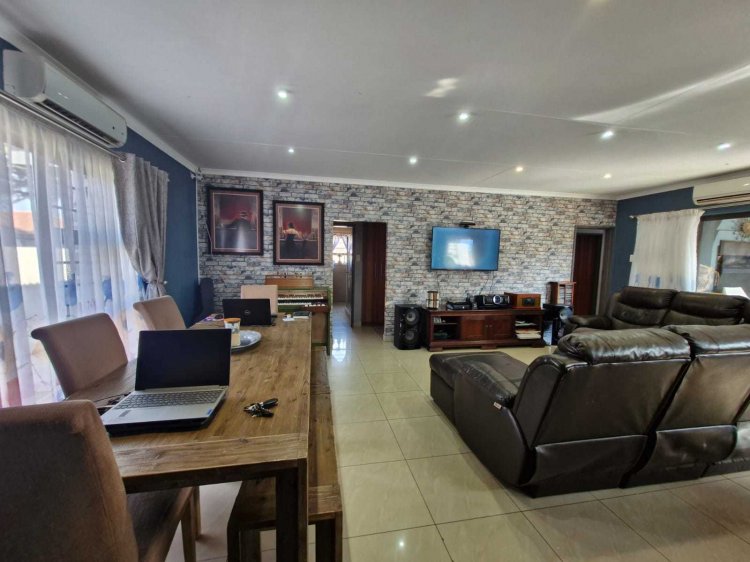 This stunning family home is situated in a secure, fully walled complex with electric fencing, offering peace of mind and privacy. The property itself is fully walled and features a double carport and double garage with remote control access.