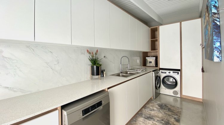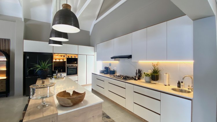 Designed for Quality and Seamless Entertaining The heart of this home is the spacious, open-plan living area and kitchen. This space is a testament to quality design, featuring a gas hob, electric oven, and a separate scullery.