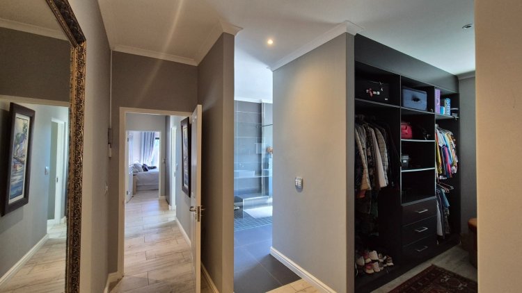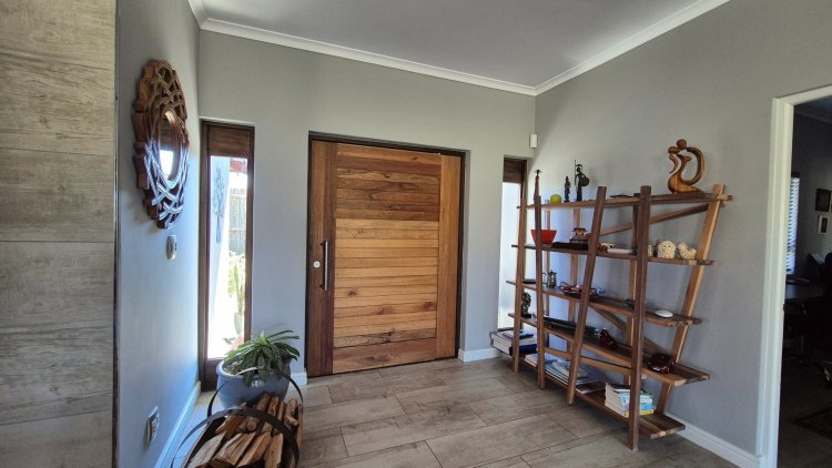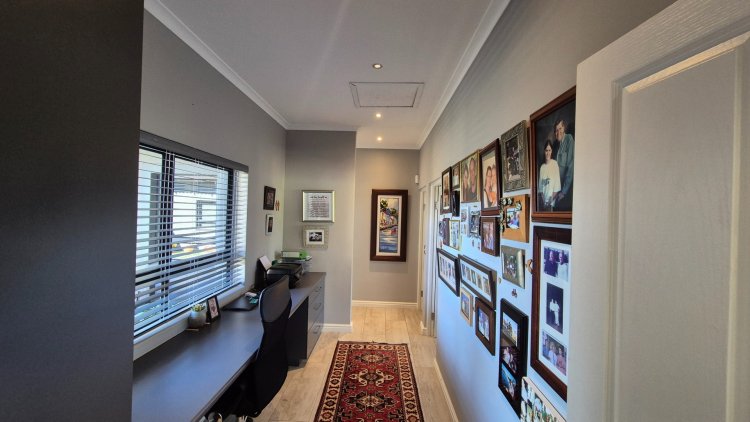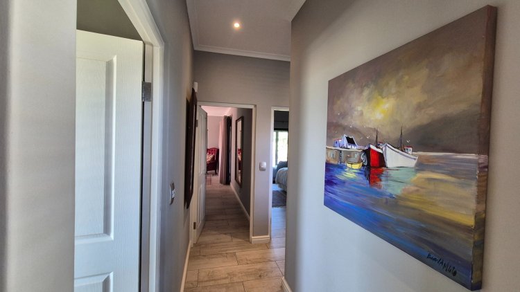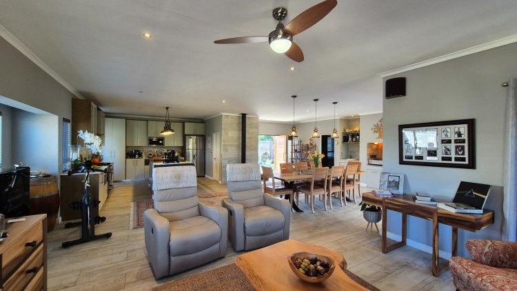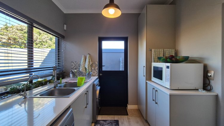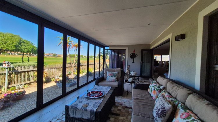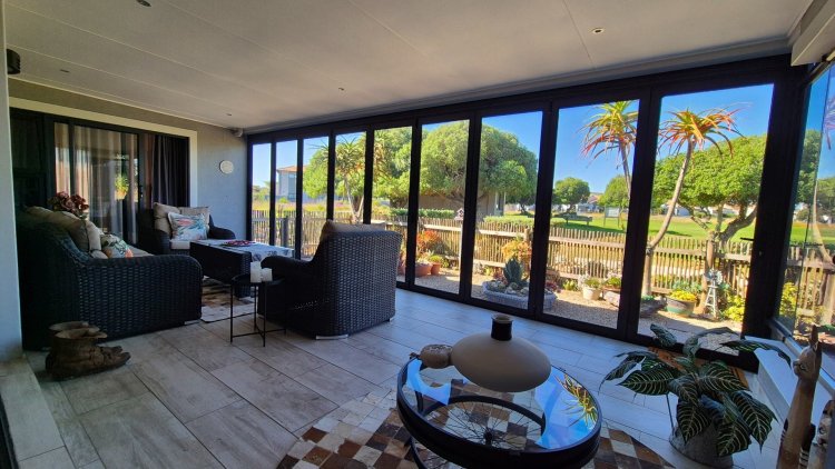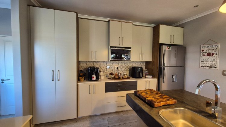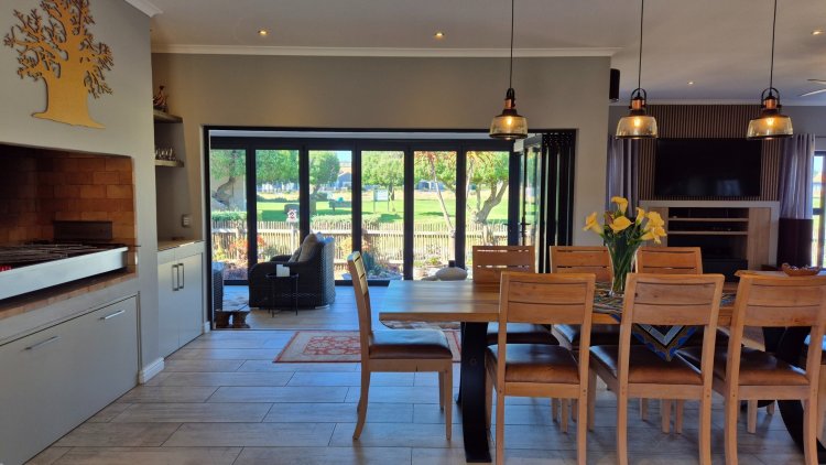 This modern residence, with its clean architectural lines and refined finishes, offers a harmonious balance of style and comfort. Positioned to take full advantage of its north-facing orientation, the home enjoys uninterrupted views across the fairway. Upon entering through the private courtyard, a beautifully landscaped water-wise garden sets the tone for the attention to detail and quality that defines the interior spaces. The open-plan design creates a seamless flow between the living, dining, and kitchen areas, ideal for both relaxation and entertaining. Notable features include a Smeg Victoria stove, 12 solar panels with a 7KVA inverter and batteries, wood-burning combustion fireplace, ceramic tile flooring, fitted pantry, and fibre connectivity. An office setup with built-in cupboards provides a practical work-from-home solution, while UV-tinted windows enhance energy efficiency. The property is also pet-friendly and enjoys the privacy of being located at the end of a cul-de-sac. Accommodation comprises three well-appointed bedrooms. The main en-suite includes an elegant walk-in wardrobe, while two bedrooms open onto a sunroom. The third bedroom has direct access to the courtyard and garden, offering versatile living arrangements. Situated within Langebaan Country Estate, this property provides secure estate living in one of the West Coast’s most sought-after residential destinations. Contact Sadie-Lee Venter today to arrange a private viewing of this exceptional home.