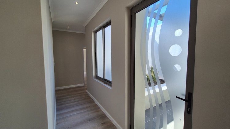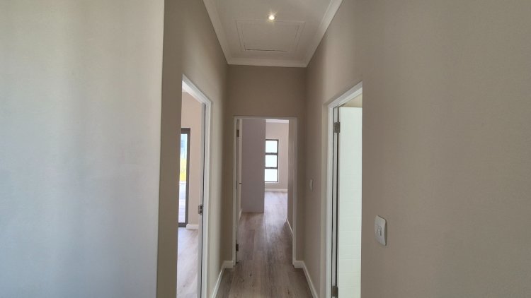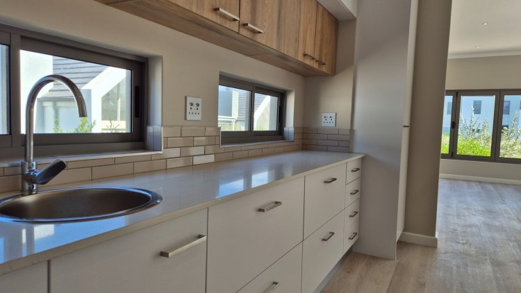 Designed for modern living, this newly built north-facing home offers a calm and scenic lifestyle within the sought-after Langebaan Country Estate. Its prime position along the greenbelt enhances both privacy and natural views, making everyday living feel connected to nature. The heart of the home is its open-plan layout, featuring a contemporary kitchen with a separate scullery that flows into the living area and out to a sheltered braai patio—ideal for laid-back evenings or entertaining guests. The main bedroom is complemented by a sleek en-suite bathroom, while two additional bedrooms share a well-appointed family bathroom. One of the rooms can easily double as a home office. The double garage with direct home access adds practical convenience. Residents can take advantage of a range of lifestyle amenities, from scenic walking, running, and cycling routes to abundant birdlife and roaming buck. The estate also features a gym, beauty spa, and various sports courts including tennis, netball, and basketball. A Smart Choice: With no transfer duty and appealing monthly rates, this property delivers exceptional value—combining quality living with long-term investment appeal in a premium estate.