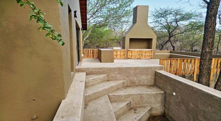Enjoy relaxed evenings at the built-in braai and outdoor entertainment area, which opens onto breathtaking parkland views, allowing you to watch zebra, kudu, and warthogs wander by.