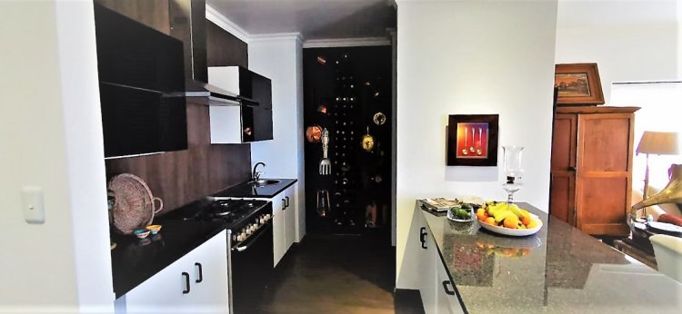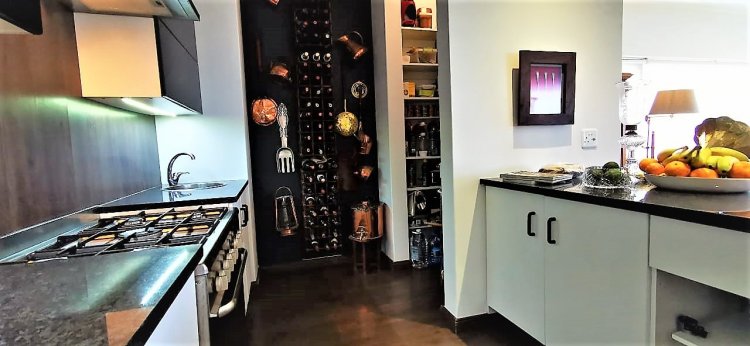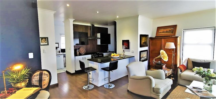 Ground level: Double automated garages and 2 undercover parking spaces; an undercover conversation pit and a lavish designer low-maintenance garden with fruit trees. Top Floor: The entire top floor is on one level. Open plan, centrally located Jetmaster, spacious patio, and dining room. Well-designed kitchen with pantry and linen cupboard. 3 spacious bedrooms, each with en-suite bathrooms and a guest toilet. At the back of the home: a covered patio bordering Outeniquashbosch, enjoying roaming bucks and mountain views. Also a Wendy house, which can be used as needed for extra guests or as a study or hobby room.