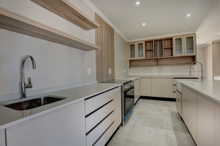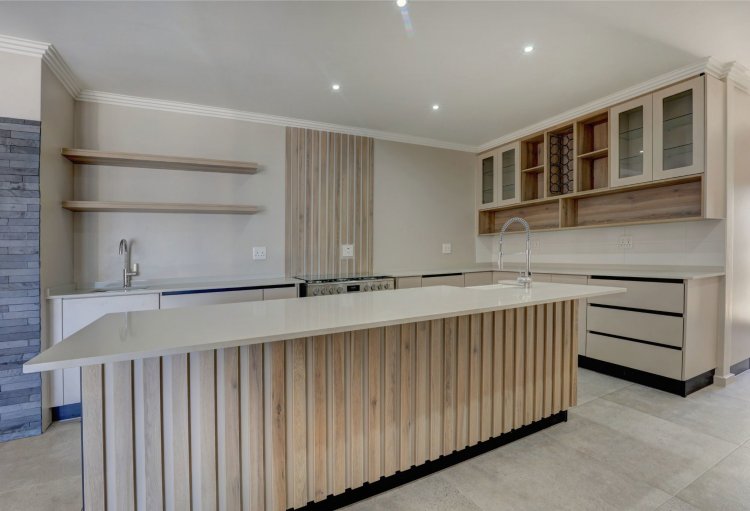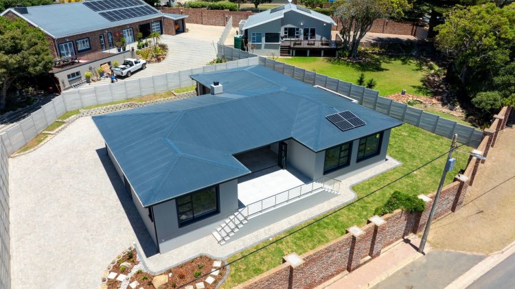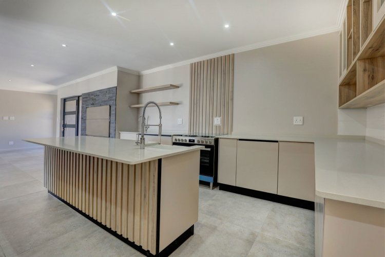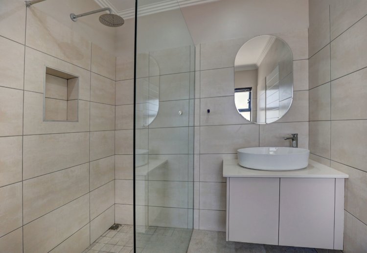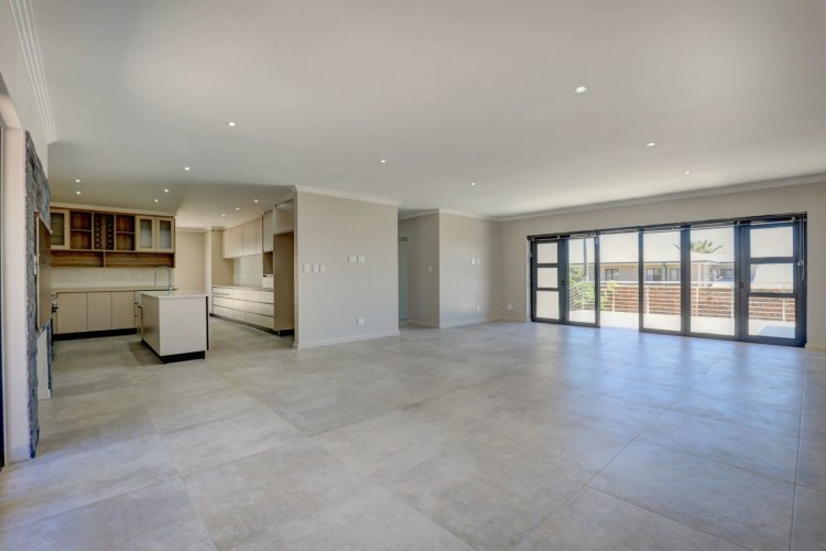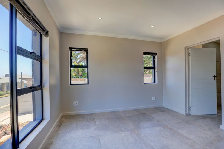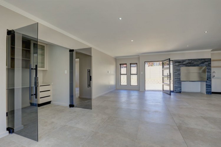 This newly built home in Mossel Bay Central offers a light, north-facing orientation designed for comfortable everyday living. The open-plan living area flows seamlessly through stacking doors, creating a natural connection between interior and exterior spaces.