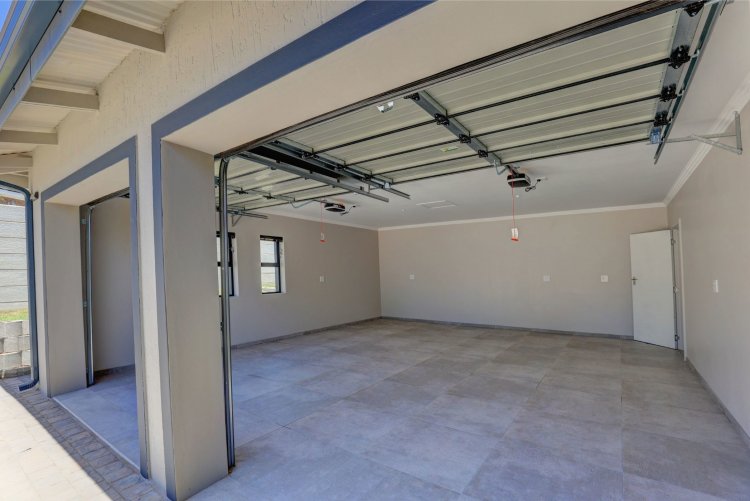 An extended double garage allows for larger vehicles such as 4x4s and SUVs, with additional storage space. Solar support for the geysers adds efficiency. The property further benefits from a spacious yard and ample on-site parking.