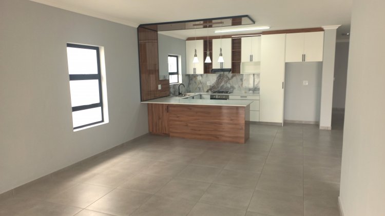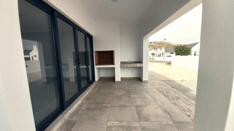 Entertainment Excellence: A large, inviting entertainment area flows seamlessly onto a sunny patio, complete with a built-in braai (barbecue) for unforgettable gatherings with family and friends.