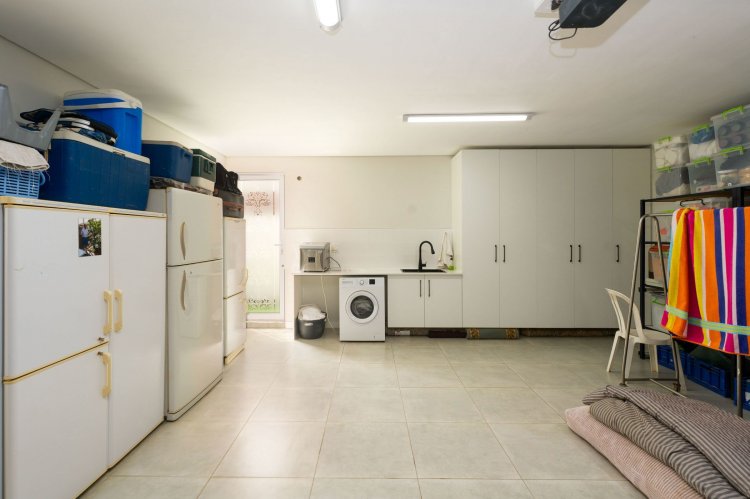 Separate laundry area in the double garage, with sink and cupboard space