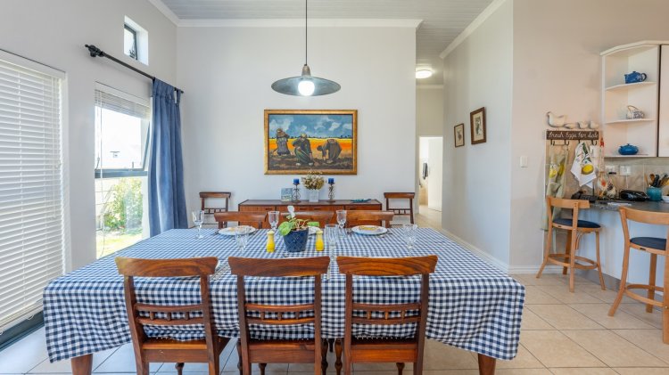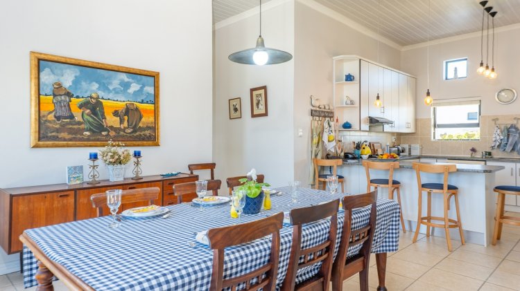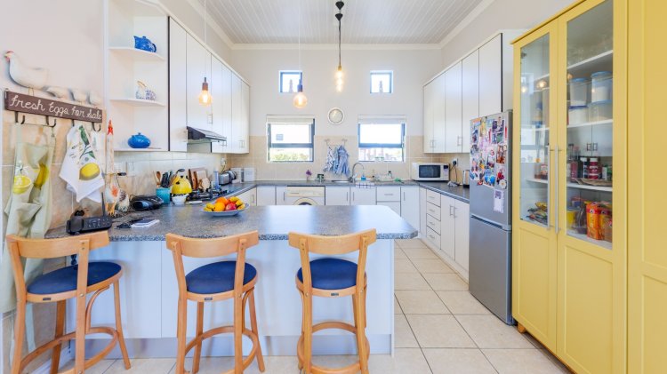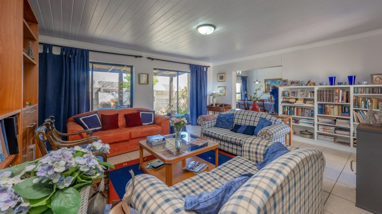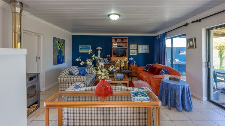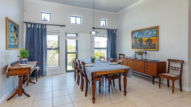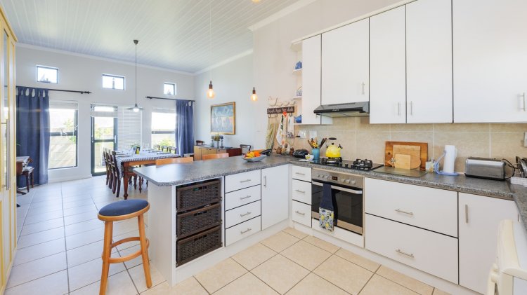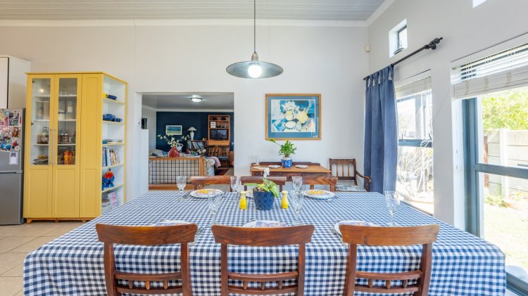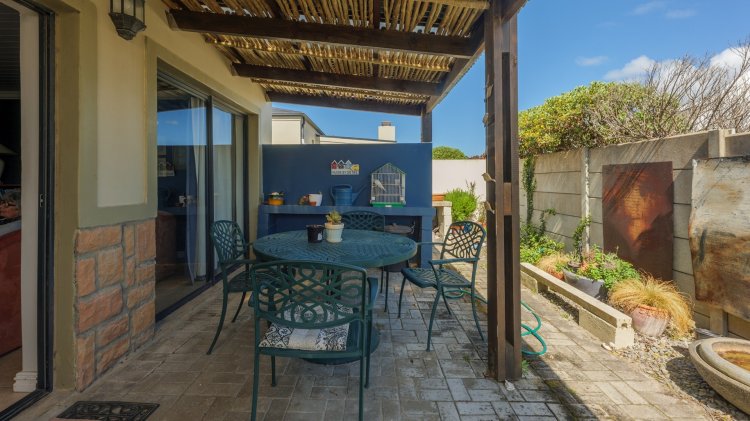 Sole mandate: Located in Argonauta Estate in Struisbaai, this comfortable 3-bedroom home is just 500 metres from the beautiful white sandy beach. Positioned on a corner plot, the property features an inviting open-plan layout that seamlessly combines the dining area and kitchen. The spacious living room is enhanced by a cast-iron fireplace, a concealed braai, and direct access to the single garage. With built-in cupboards in every bedroom, the home provides ample storage, while the main bedroom enjoys an en suite bathroom. A guest bathroom serves the other rooms, and both the living room and main bedroom open out onto the lush garden, with the living space extending further to a covered patio, perfect for relaxing or entertaining.