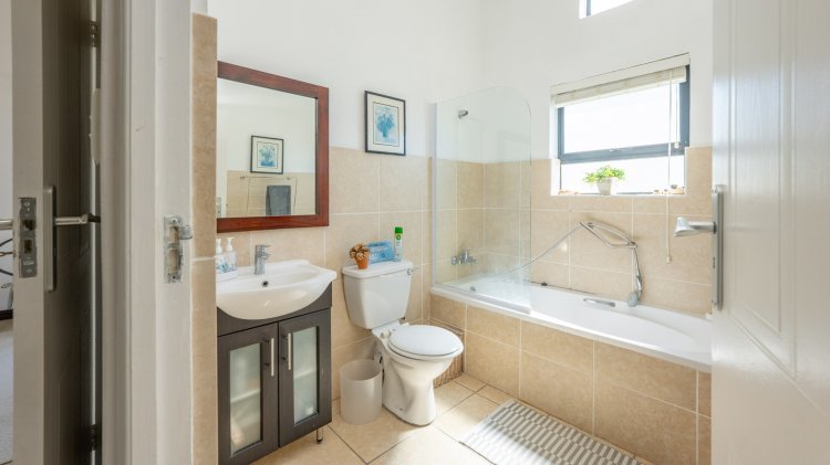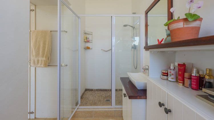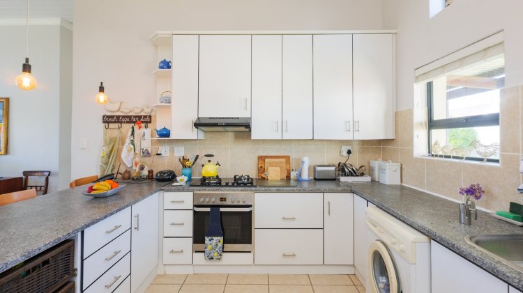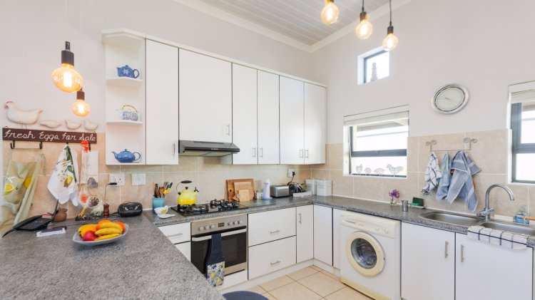 The outdoor area offers a private garden with a convenient outside shower, ideal for rinsing off after a day at the beach. Situated within a secure gated estate, residents also benefit from shared amenities including a well-maintained communal garden, and ample guest parking. This property combines comfort, functionality, and an excellent location, making it an ideal choice for both holiday and permanent living in Struisbaai.