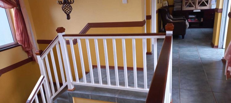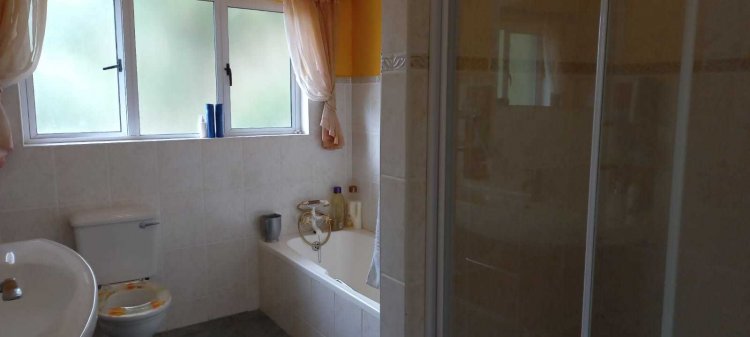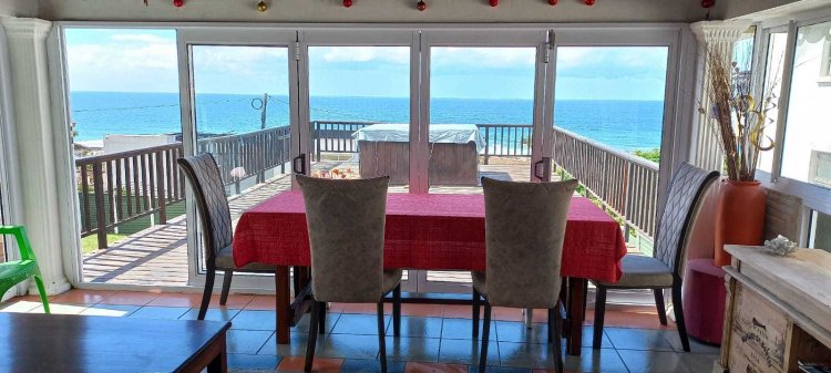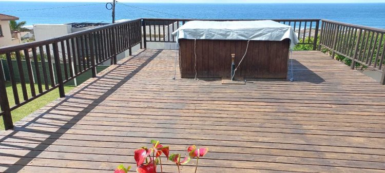 GROUND FLOOR - Modern spacious kitchen with lots of cupboards, glass top hob, under counter oven and extractor fan. An added feature is a pantry. - A large comfortable lounge and dining area leading out through sliding aluminium door to an enclosed patio with sea views. - The attractive enclosed patio leads out to a large deck with a built-in jacuzzi. Ideal for entertaining and enjoy 180degrees ocean views. - Beautiful tiles throughout.