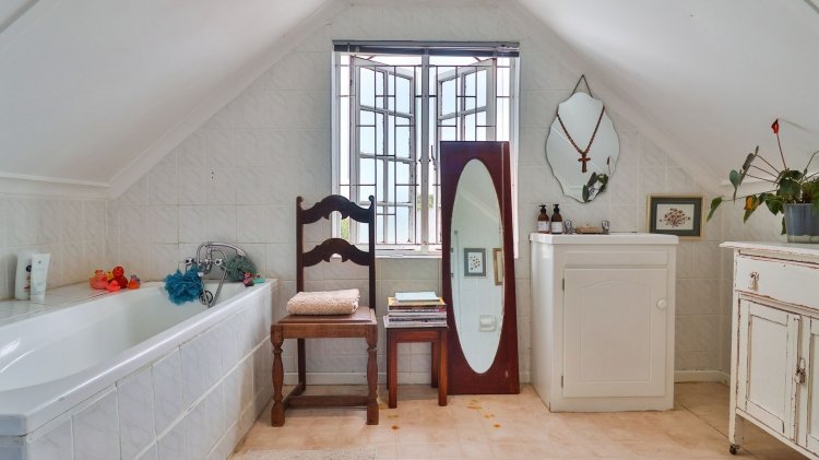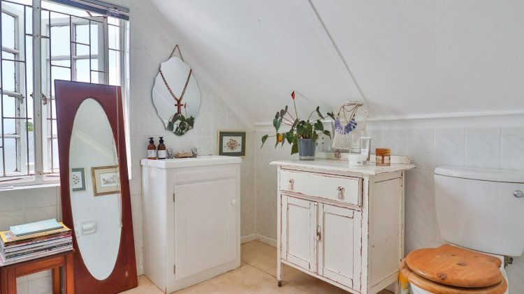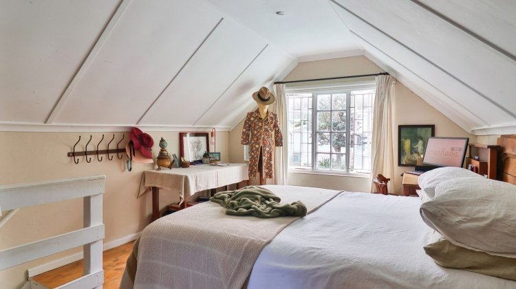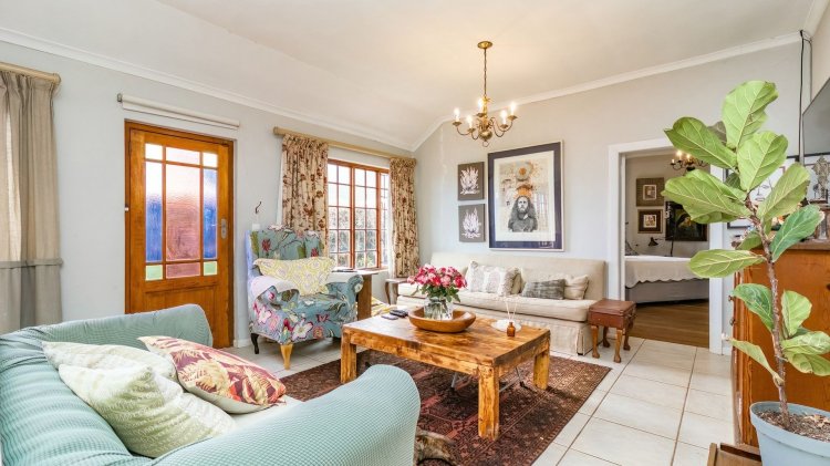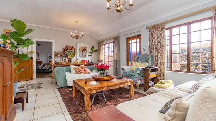 The home itself has strong structural foundations and an interesting history. Originally built from two rondawels that were later combined, it now offers two bedrooms with en-suite bathrooms, along with an open-plan living and dining room area. The kitchen connects into a versatile space that includes an office, loft-style room, and an additional bathroom, where the single garage was once converted. This layout provides multiple options for reimagining the interior to suit your lifestyle.