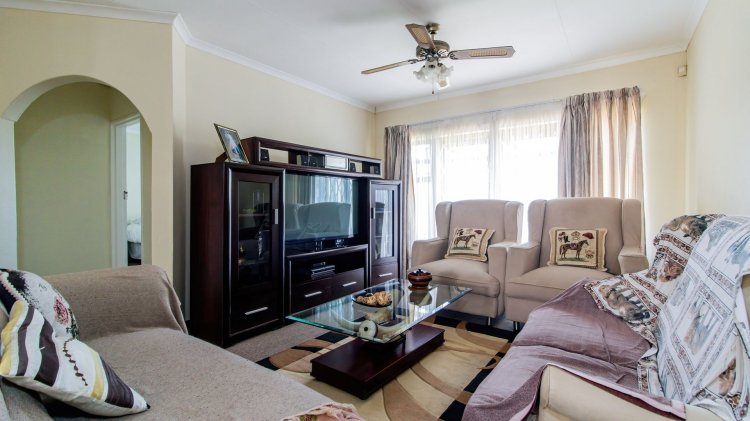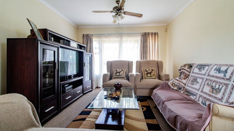 The home features three well-sized bedrooms, each fitted with built-in cupboards, ensuring ample storage. There are two bathrooms, including a main en-suite, providing comfort and privacy for the whole family.