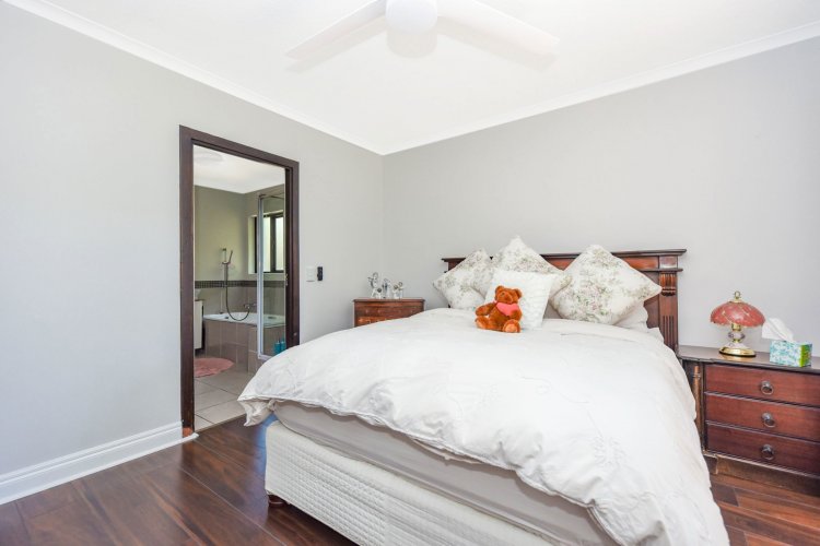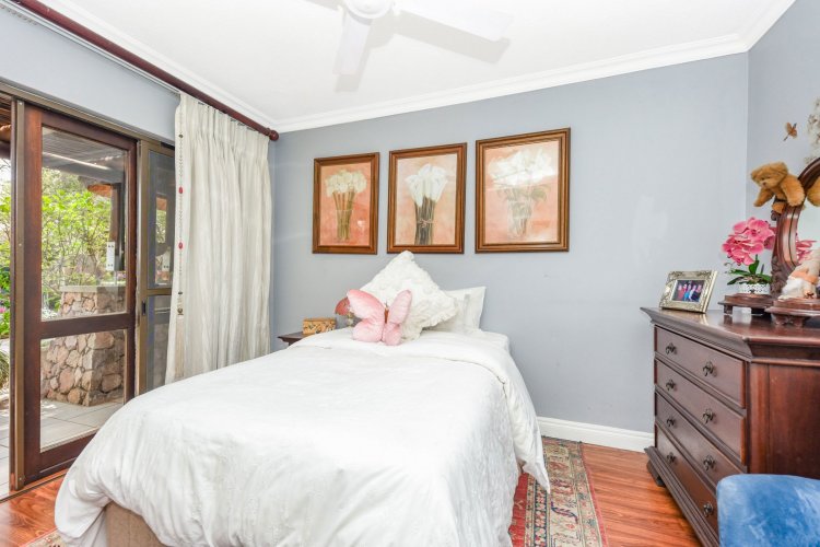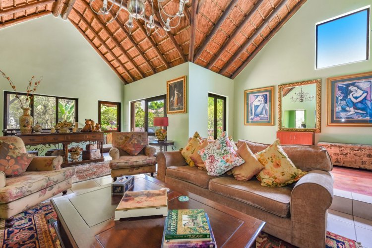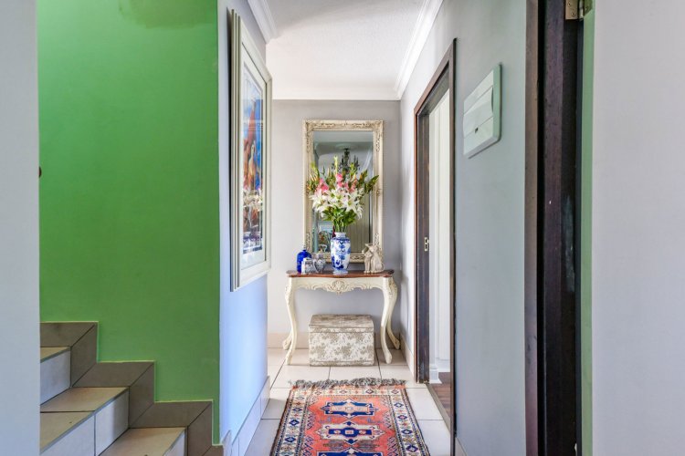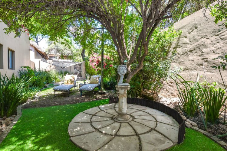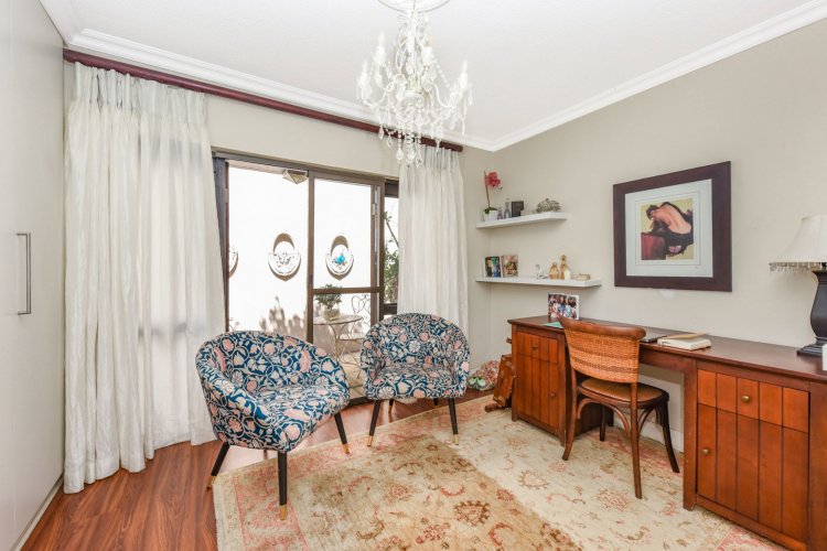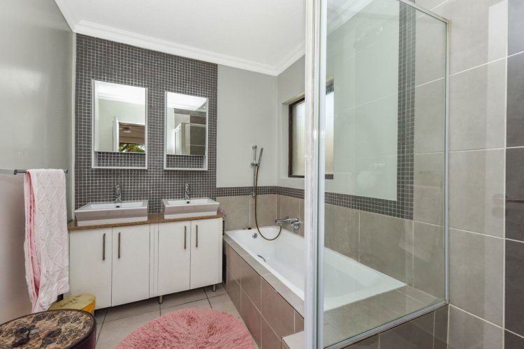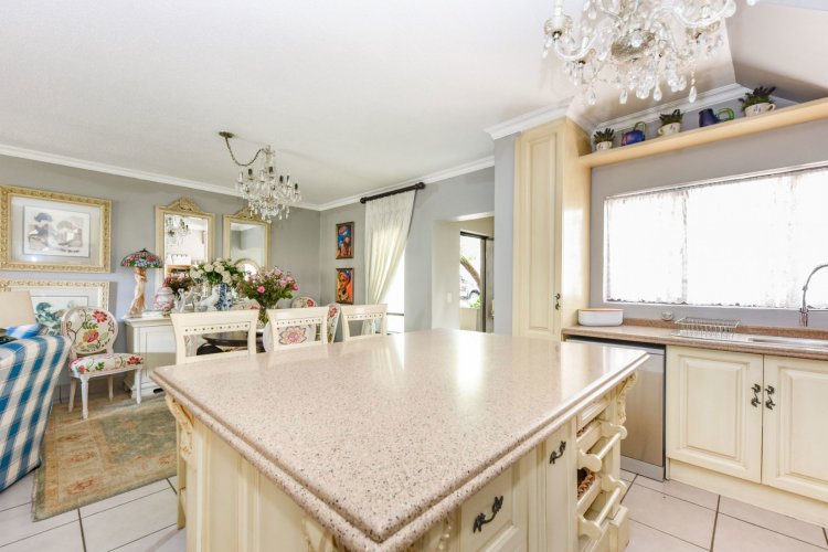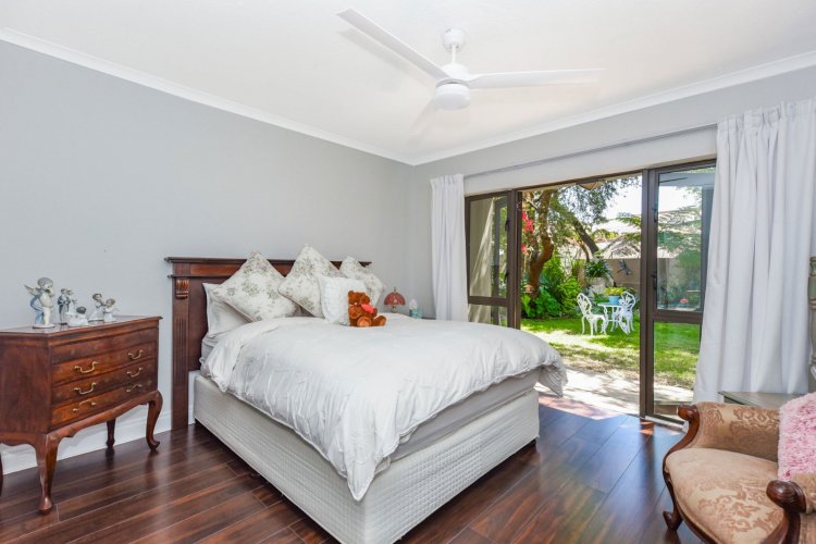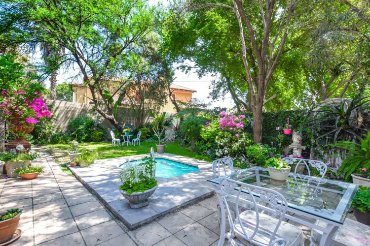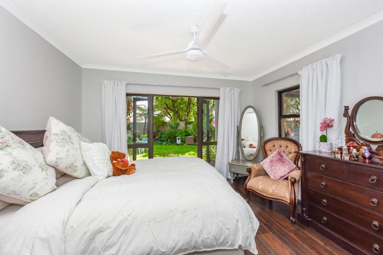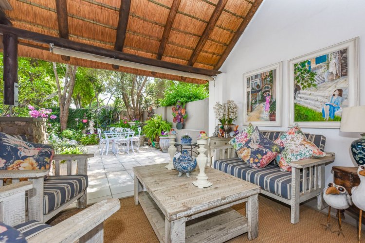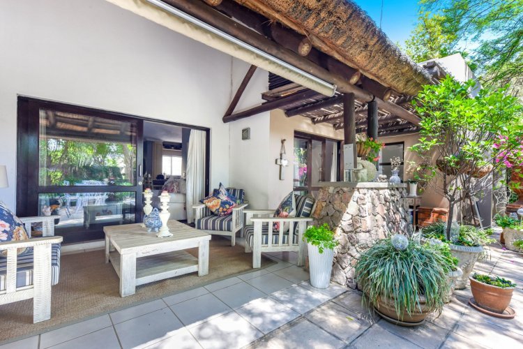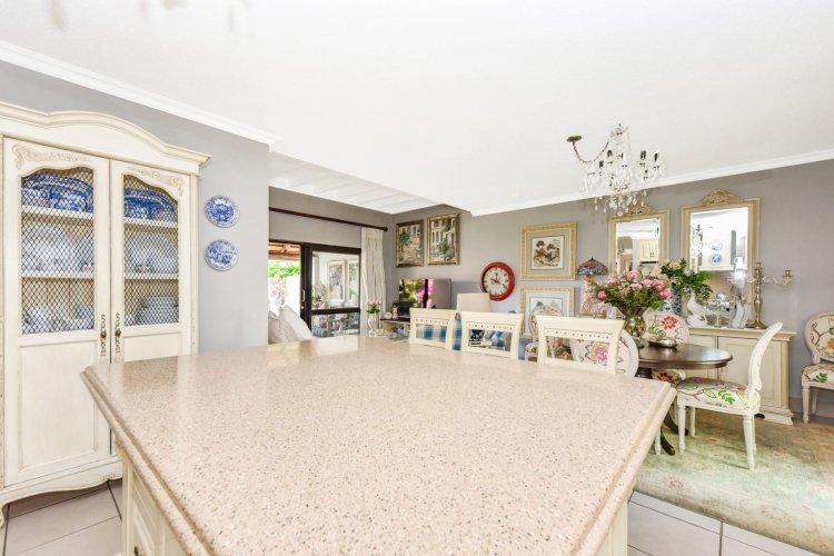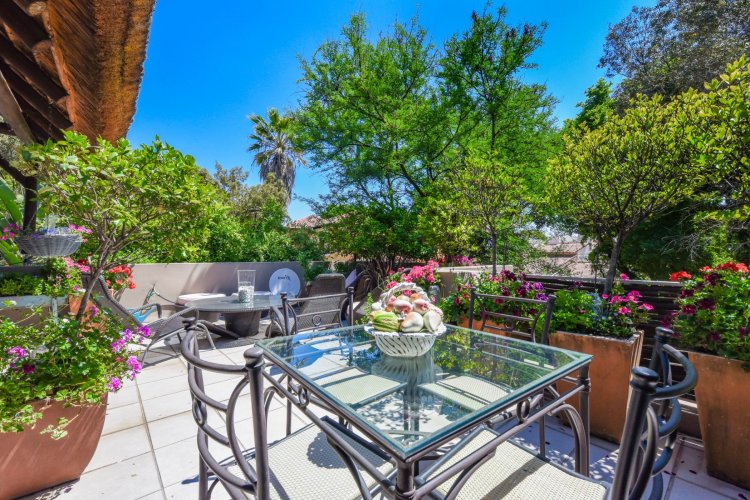 Welcome to a truly magical home — a rare gem that feels like it's been pulled straight from the pages of a storybook. Nestled in a beautifully maintained estate, this breathtaking 3-bedroom, 2-bathroom double-story townhouse offers the perfect blend of elegance, comfort, and charm. As you step through the front door, you are instantly drawn into a space that exudes warmth and style. To your left, a stunning open-plan kitchen awaits, featuring a generous center island, ample counter and cupboard space, and a layout ideal for both family meals and entertaining guests. On your right, the open-plan dining area flows seamlessly into the spacious living room, with sliding doors opening onto a covered patio. This outdoor oasis overlooks a one-of-a-kind private garden, bursting with vibrant flowers and shaded by mature trees — all centered around a crystal-clear swimming pool. Whether it's a summer afternoon with the family or a relaxed evening with friends, this space is made for unforgettable memories. Back inside, all three bedrooms open directly onto the garden through charming French doors, inviting natural light and greenery into every room. The main bedroom boasts a luxurious en-suite bathroom, completing a well-thought-out and functional layout. Upstairs, you'll find a large, versatile space — perfect for a home office, creative studio, or entertainment area — which leads out onto a private upper patio, once again surrounded by fragrant blooms and treetop views. Located close to major shops, top-rated schools, and key amenities, this home offers both convenience and tranquility in equal measure.