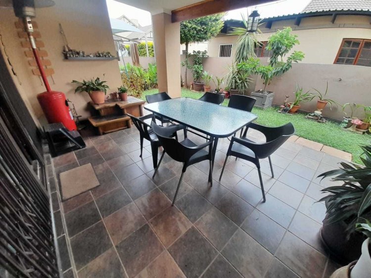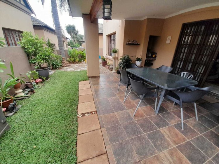3-Bedroom Duplex for Sale in Upmarket, Secure Complex – Waterfall East, Rustenburg This beautiful, move-in-ready duplex is situated in a sought-after, safe complex in Waterfall East, Rustenburg. A true gem that ticks all the boxes, offering comfort, space, and excellent security. The home features a neat, well-maintained garden with an irrigation system, supported by the complex’s borehole. Inside, you are welcomed by a modern open-plan layout consisting of an air-conditioned lounge, dining area, and kitchen—perfect for relaxed living and entertaining. Downstairs offers two spacious bedrooms with built-in cupboards and a well-appointed bathroom. Upstairs, the generous main bedroom provides privacy and comfort, complete with an air-conditioner and an en-suite bathroom. Leading from the lounge is a patio that opens onto a beautiful entertainment area with a built-in braai, ideal for hosting family and friends. The garden is well looked after and adds to the home’s tranquil atmosphere.