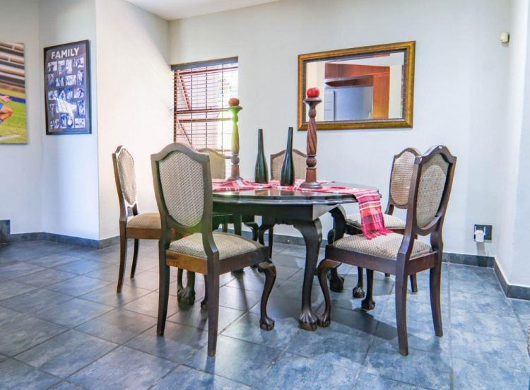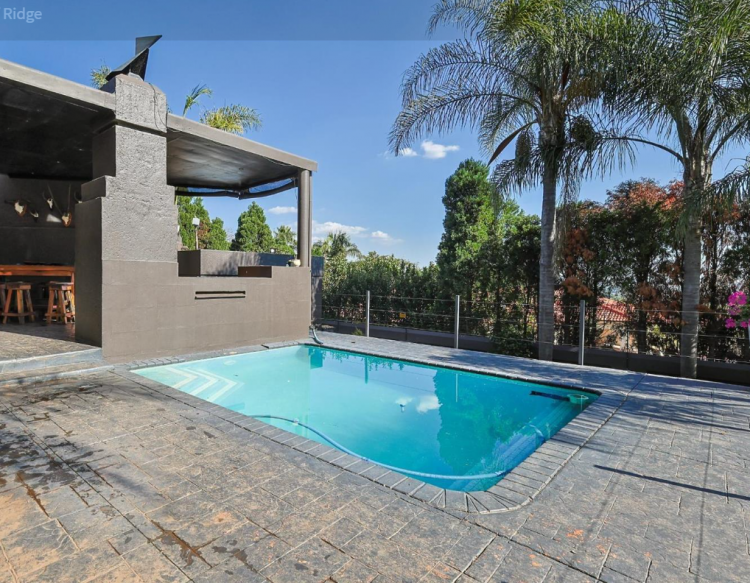 Nestled in the desirable Waterkloof Ridge, this expansive and charming residence seamlessly combines comfort, style, and exceptional entertainment options. Featuring four bedrooms, three full bathrooms, and four generous living areas, this home is tailored for effortless living and entertaining. Upon entry, a spacious foyer with a delightful bay window greets you, providing serene views of the landscaped gardens and sparkling swimming pool. The layout effortlessly transitions into a cozy reading lounge and a chic guest restroom. At the heart of the home lies a stunning open-plan design, encompassing a dining area, a family TV room, and a remarkable built-in bar that opens directly onto a covered terrace with a built-in braai, overlooking the pool—perfect for year-round gatherings. A standout feature of the home is the fireplace, thoughtfully positioned to warm both the bar area and adjacent living spaces. The beautifully appointed open-plan kitchen includes a convenient walk-in pantry and a separate scullery for added practicality. The ground floor hosts three spacious bedrooms, serviced by two full bathrooms, including one that is en-suite. Ascending to the upper level, the luxurious main suite offers a private retreat, complete with a full en-suite bathroom and an adjoining lounge or study that leads to a covered balcony with stunning views. Additional highlights include: - Two double garages and ample visitor parking - Solar backup power - Water backup system equipped with filtration and booster pump - Excellent flow between indoor and outdoor entertainment spaces - Domestic quarters - Security - electric fence - 24 hour armed response - street cameras This home provides a perfect blend of comfort, versatility, and peace of mind, all within an exclusive and established neighborhood. to avoid loosing this gem! Don't delay - make your appointment soon