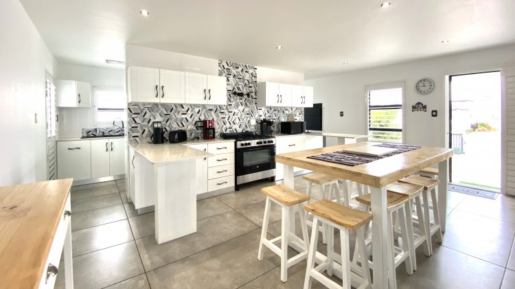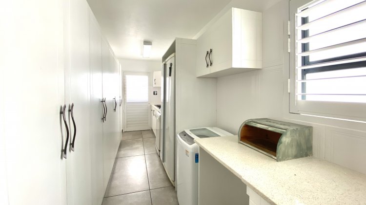 Extras comprise stylish shutters, secure trellis doors, 12 solar panels with backup batteries, ample water storage with dual 5000L tanks, and security features including beams and an alarm system.