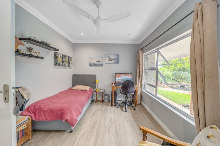 The home features three spacious bedrooms, all en suite, creating comfort and privacy for the whole family. There are three generous living areas that flow effortlessly to a gorgeous, large patio overlooking a tranquil rock pool and lush garden, perfect for relaxed afternoons and sundowners with friends. The kitchen has been newly renovated and is both stylish and practical, forming the heart of the home. A full cottage with a separate entrance adds excellent value, ideal for extended family, guests, or rental potential. Neat, well cared for and move in ready, this is a home that will not stay on the market for long. Do not delay.