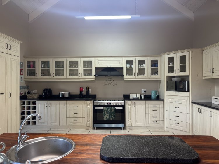 The kitchen is a standout feature—spacious, practical, and finished with a large separate scullery offering extensive storage. Both the oven and stove run on gas, ensuring efficient and reliable cooking.