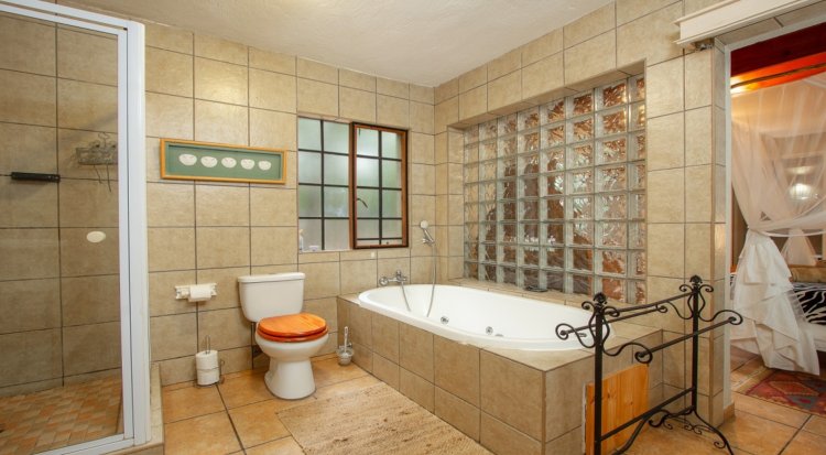 Step outside to an entertainer’s paradise featuring a patio with a boma, leading to a built-in braai– ideal for evenings around the fire. Adjacent to the boma, the spacious lapa lounge includes a built-in bar, providing the perfect setting for relaxed social occasions.