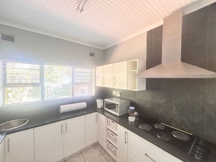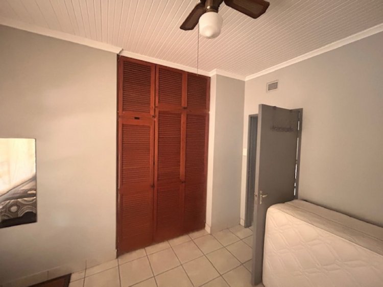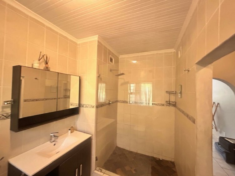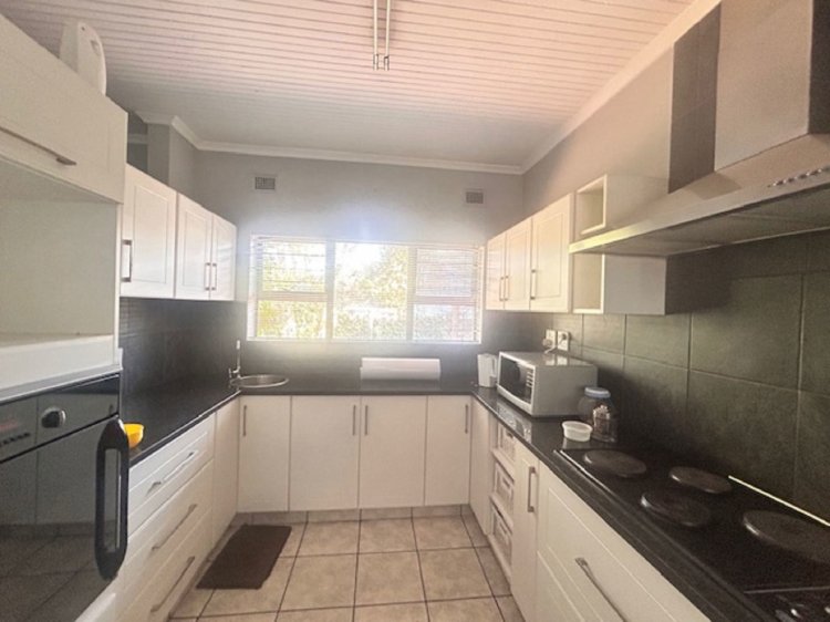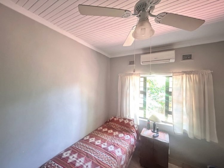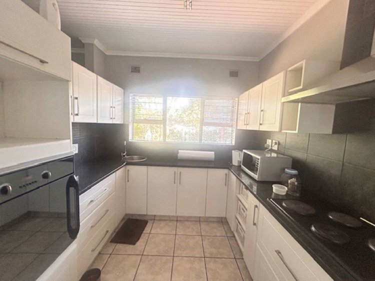 Step inside to find a spacious living and dining area that seamlessly flows into a neat, well-equipped kitchen with a convenient scullery. The home features four bedrooms, including a master suite with a walk-in closet and en-suite bathroom. The remaining bedrooms share a modern full bathroom. All bedrooms come fitted with ceiling fans and air conditioning to ensure year-round comfort.