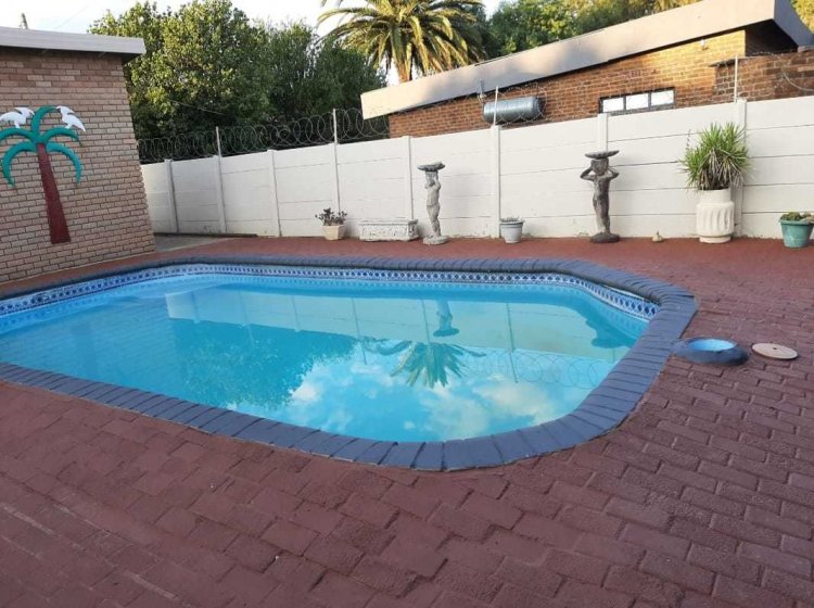 Located in Odendaalsrus, this 4 bedroom family home boasts: 2 Full Bathrooms 3 Spacious Living Rooms Bar area with special wooden features Wooden Kitchen Study and entertainment area Big guest room with own bathroom Double Garage and Carport for 6 vehicles Sparkling pool, perfect for warm days Beautiful maintained garden Advanced Alarm System for added security Outside room with bathroom JoJo with pump