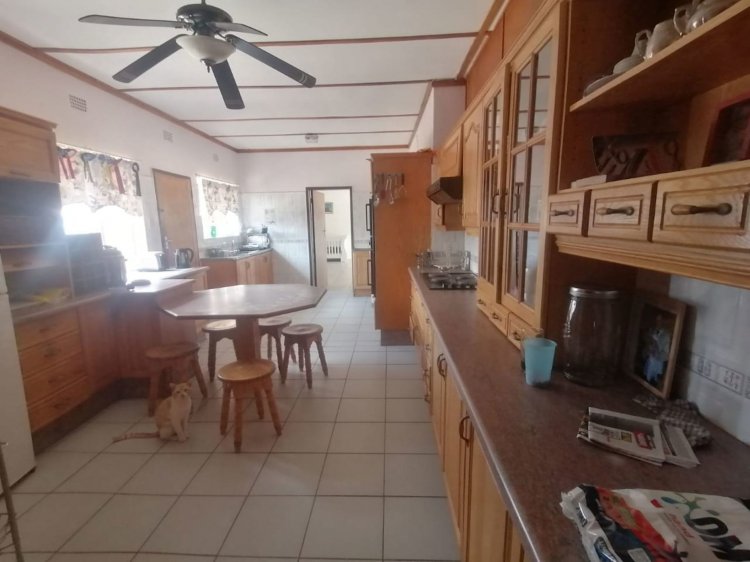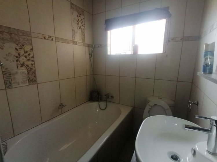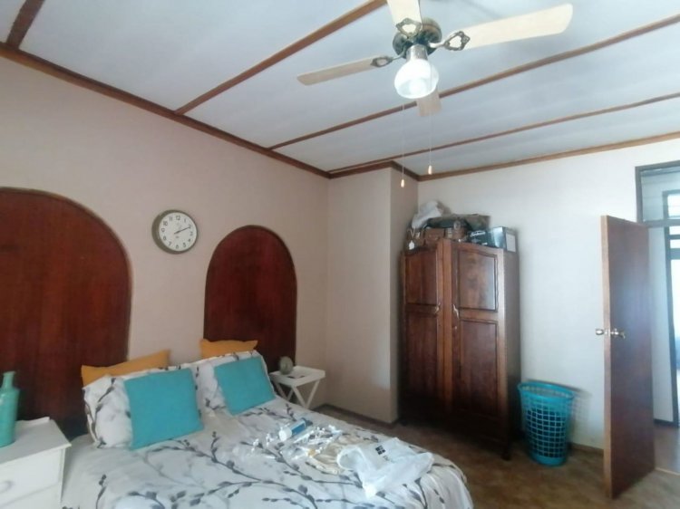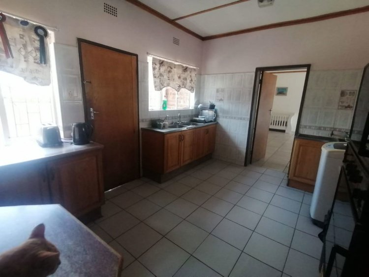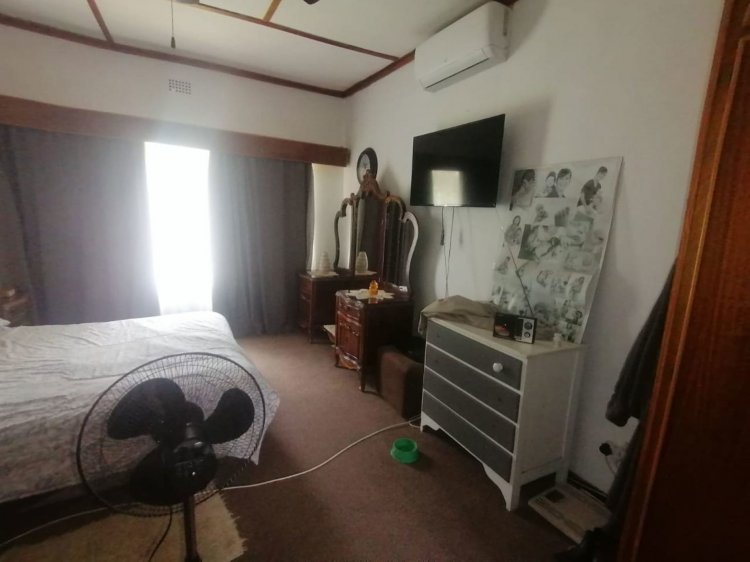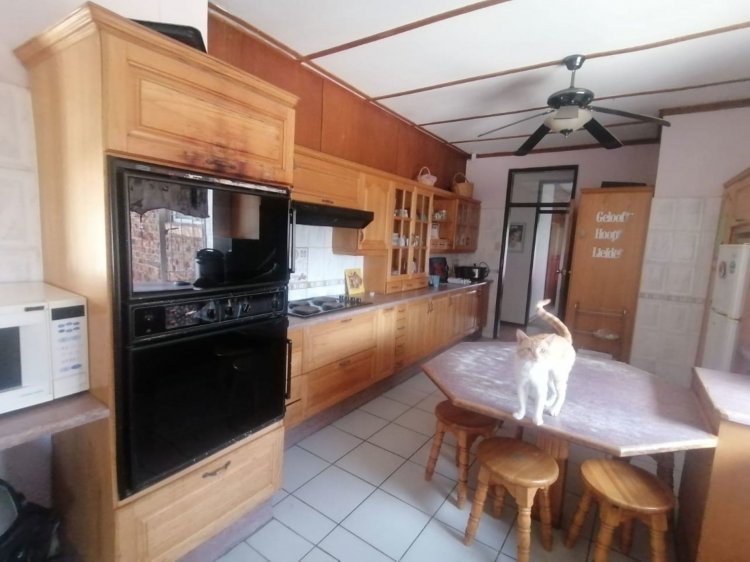 The kitchen is well laid out with a breakfast nook, double eye-level oven, hob and extractor fan, tiled floors and a double basin. The bedrooms are spacious — the main bedroom offers carpets, built-in cupboards, ceiling fan, aircon and an en-suite bathroom with bath, shower, toilet and basin. The other bedrooms have built-in cupboards, fans and carpets. The second bathroom has a bath, toilet and basin, with a separate toilet and basin as well. At the back of the property is a practical workshop area for storage or hobbies. If you're looking for solid bones, lots of space and a chance to modernise a home in a sought-after part of Riebeeckstad, this one has excellent potential.