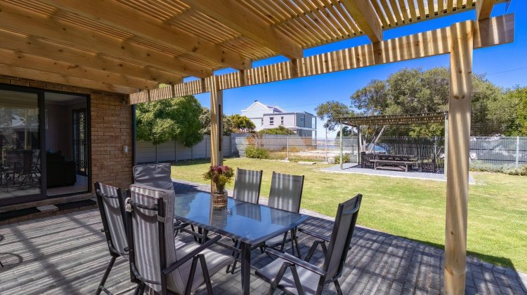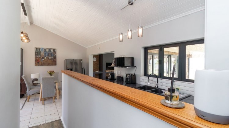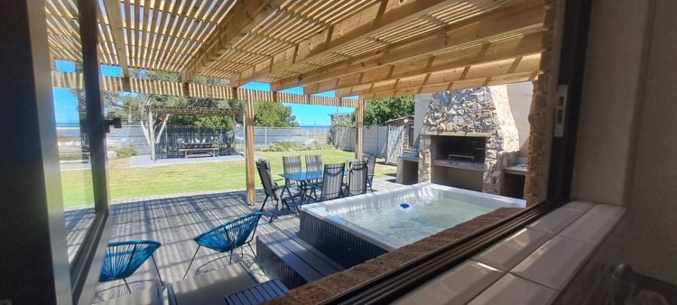 Entertainers dream...relax in the jacuzzi while overlooking the sea. This newly renovated and beautifully modern home in Sandbaai offers the perfect balance of luxury, comfort, and convenience + a separate spacious flat. Designed with modern finishes and thoughtful detail, the home features open plan living areas, two fully equipped kitchens, and aluminium windows with stacking doors that fill the interiors with natural light. Perfect for both relaxation and entertainment, the property includes indoor and outdoor braai areas, a WiFi-enabled temperature-controlled jacuzzi set beneath a stylish pergola, an inverter, and air-conditioning. Smart features enhance everyday living with a comprehensive security system and WiFi-enabled cameras, energy-saving lighting, and sleek, modern taps and mixers throughout. Ocean views further add to the sense of coastal charm. Located within walking distance to the beach and just a short drive from the major shopping mall, this home provides an unbeatable lifestyle. It also offers versatility with a dedicated office or studio, making it ideal for remote working or as an income-generating property. This is more than just a home – it is a lifestyle opportunity in one of Hermanus’s most desirable seaside suburbs.