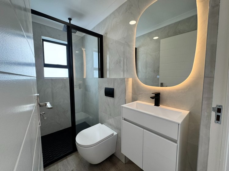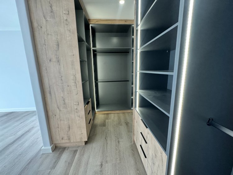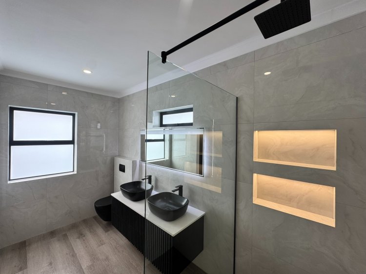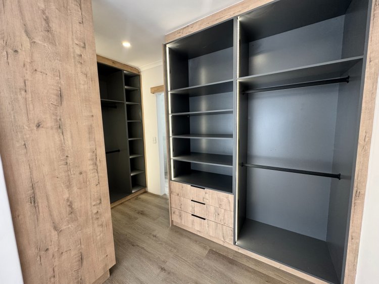 The property offers four well-sized bedrooms, each designed with comfort and functionality in mind. The main suite is a true retreat, complete with a luxurious en-suite bathroom featuring a double vanity, walk-in shower, and high-end finishes. A beautifully lit walk-in closet with LED details enhances the modern mood, giving a boutique-hotel feel to everyday living.