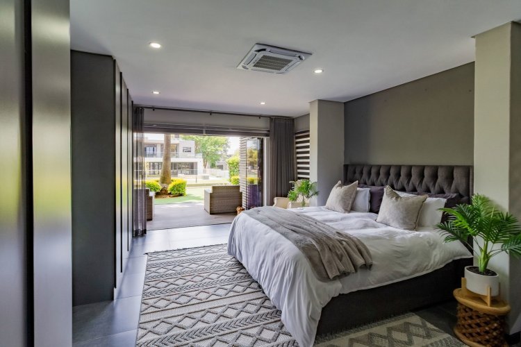 The ground floor includes an en-suite bedroom with ample cupboards, patio access, and a private bathroom.