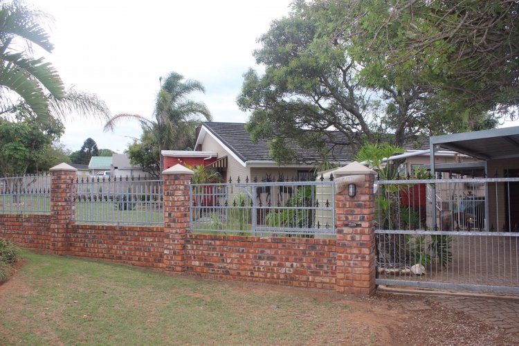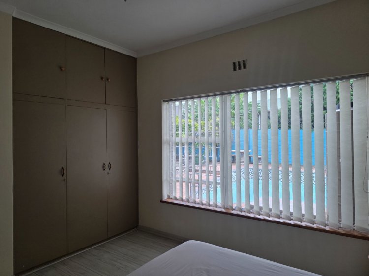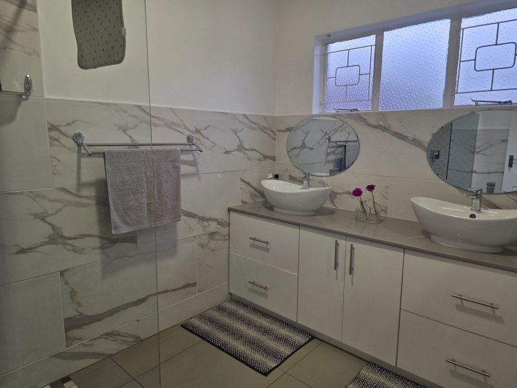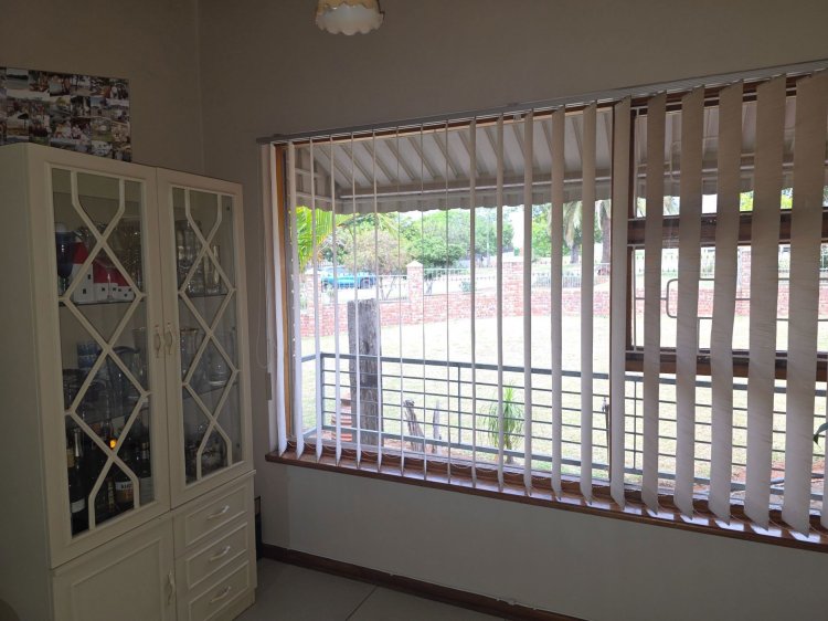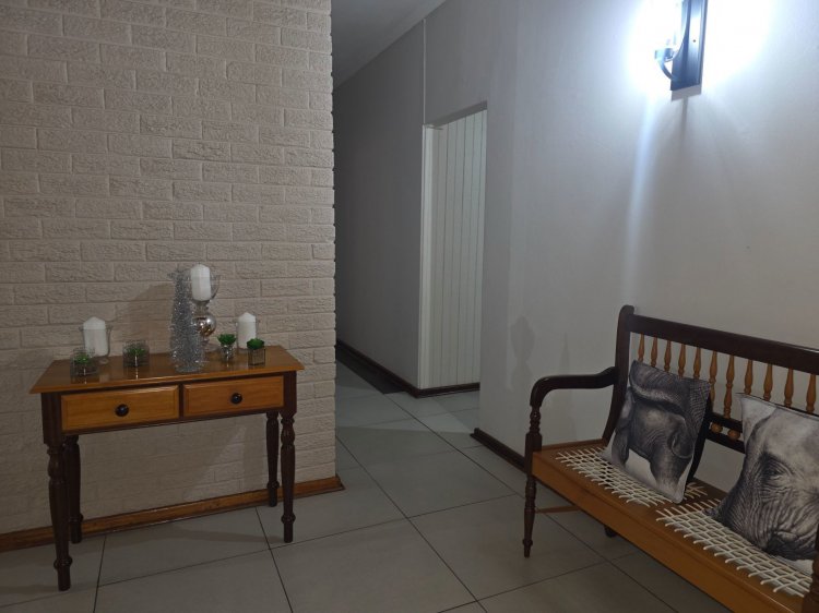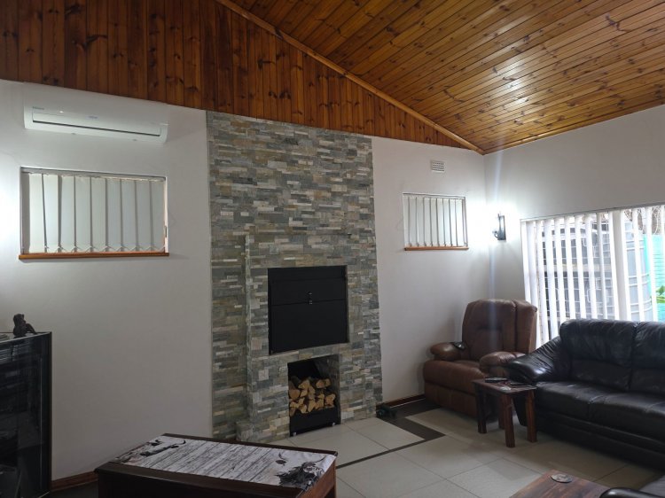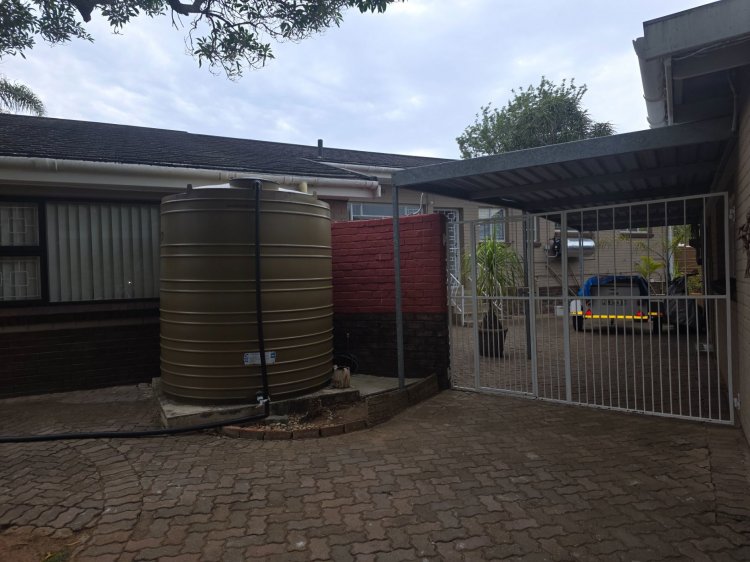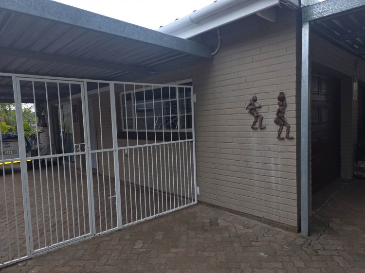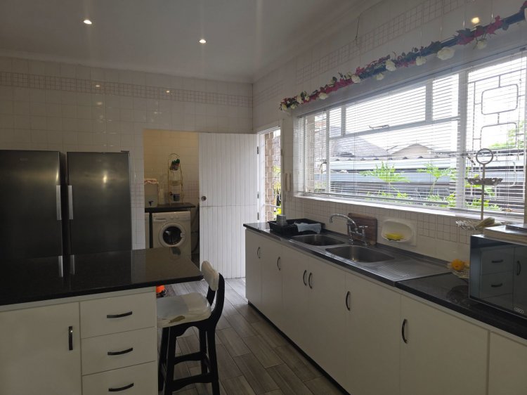Set back from one of the prettiest streets in Vanes Estate, this exceptional home boasts a fabulous entertainment area and all the space in the world. The property is protected by an attractive wall with wrought iron insets and accessed via a remote front gate that leads to a paved forecourt. In addition to an automated double garage, a triple carport ensures that there's safe parking for three more vehicles. And then there's the showstopper entrance hall. Illuminated by transparent roofing, its unusual, curved architecture evokes an art gallery vibe and sets a welcoming tone for the interior. Graced by soaring wooden ceilings, the living rooms include a lounge with a stone-clad fireplace, built-in wood storage, aircon and sliding doors to a large, sparkling blue swimming pool. Warm in winter and cool in summer, the lounge flows easily into the TV room, also with access to the pool and air-conditioning, the dining room for casual and formal meals, and out to a covered stoep with pull-down weather blinds. Surrounded by brick paving, the sun-splashed pool is offset by low maintenance plantings and a vibrant wall to ensure privacy from the neighbours. For the family chef, the stylish white kitchen with its contrasting dark granite tops, is a visual and practical feast! It's equipped with a gas hob, extractor fan, double eye-level oven, and a counter with seating space for companiable cooking and breakfasts on the go. Alongside is a scullery with machine connections and a deep double sink for heavy duty washing. Last but not least there is a thatched lapa with a built-in braai and pulldown blinds, so whether it's raining, windy or cold, you'll never have to postpone the party. For mom and dad, the main bedroom is pure indulgence with laminated floors, aircon and a door to the pool, as well las a walk-in closet, walk-in dressing room, and a relaxing bathroom with a tub and storage-savvy vanity. Three more comfortable bedrooms and a full family bathroom accommodate everyone else. Other impressive features are ceiling light / fan combos and window blinds throughout, water tanks, solar geyser, burglar bars, alarm, and security gates on exterior doors. If you're looking for a forever-summer home for your family, with good schools on its doorstep, please contact us today to set up an appointment to view this sensational property.