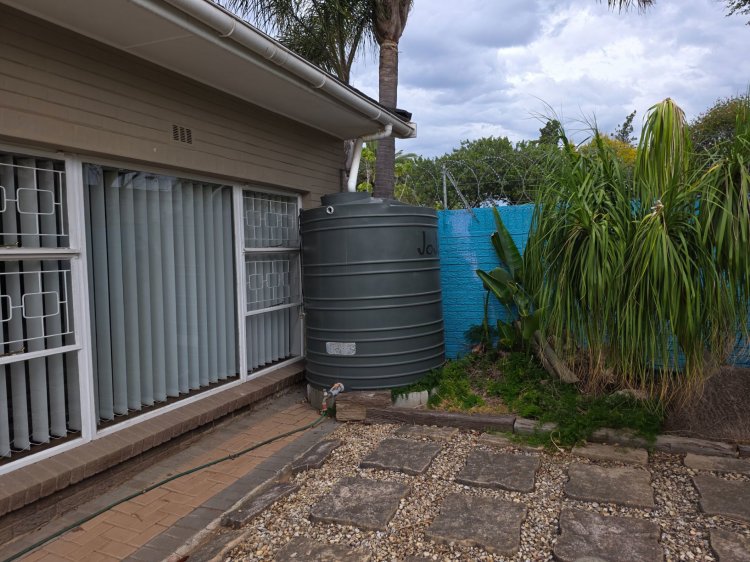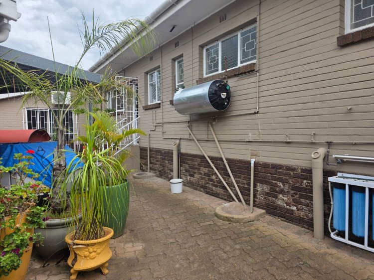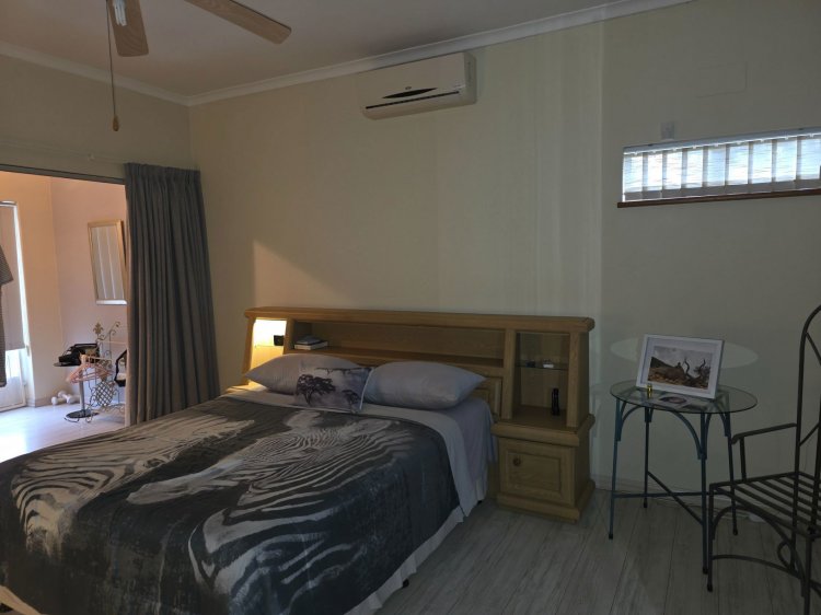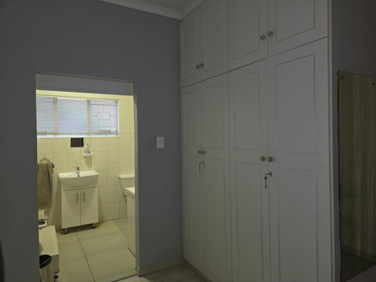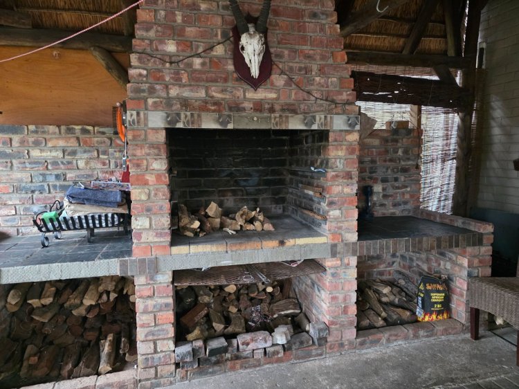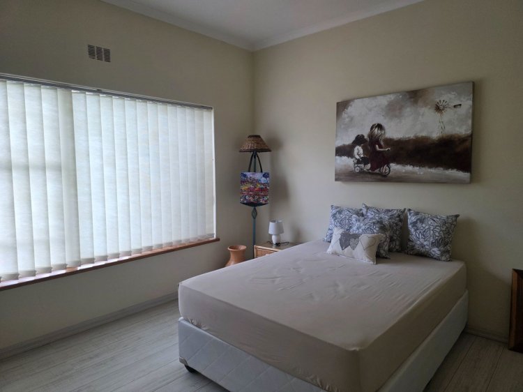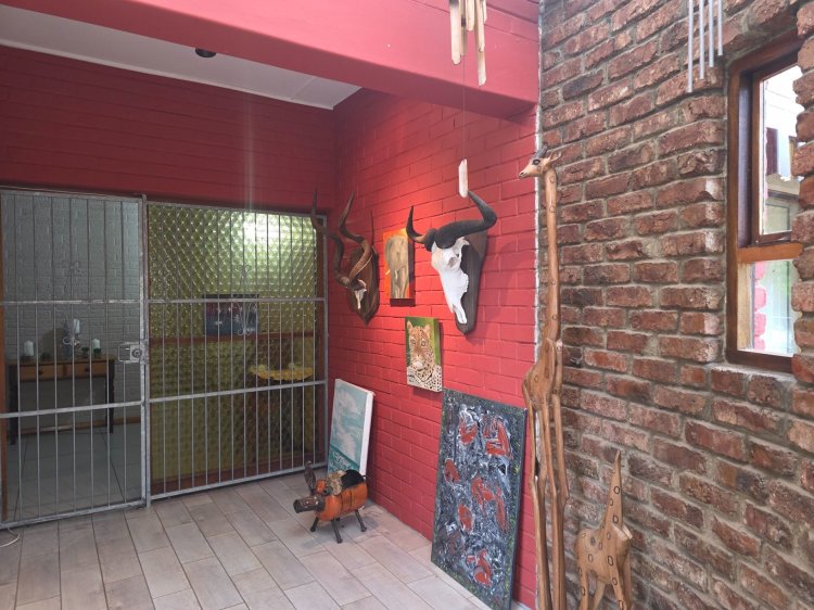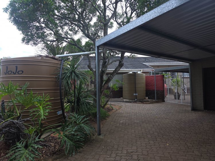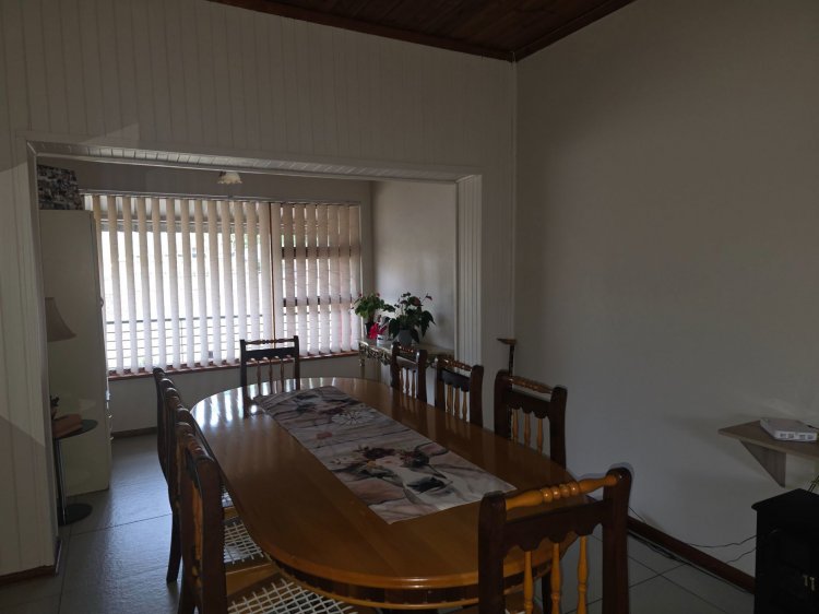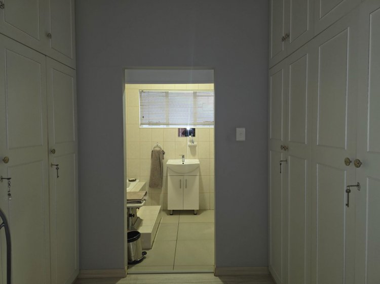 Set back from one of the prettiest streets in Vanes Estate, this exceptional home boasts a fabulous entertainment area and all the space in the world. The property is protected by an attractive wall with wrought iron insets and accessed via a remote front gate that leads to a paved forecourt. In addition to an automated double garage, a triple carport ensures that there's safe parking for three more vehicles. And then there's the showstopper entrance hall. Illuminated by transparent roofing, its unusual, curved architecture evokes an art gallery vibe and sets a welcoming tone for the interior. Graced by soaring wooden ceilings, the living rooms include a lounge with a stone-clad fireplace, built-in wood storage, aircon and sliding doors to a large, sparkling blue swimming pool. Warm in winter and cool in summer, the lounge flows easily into the TV room, also with access to the pool and air-conditioning, the dining room for casual and formal meals, and out to a covered stoep with pull-down weather blinds. Surrounded by brick paving, the sun-splashed pool is offset by low maintenance plantings and a vibrant wall to ensure privacy from the neighbours. For the family chef, the stylish white kitchen with its contrasting dark granite tops, is a visual and practical feast! It's equipped with a gas hob, extractor fan, double eye-level oven, and a counter with seating space for companiable cooking and breakfasts on the go. Alongside is a scullery with machine connections and a deep double sink for heavy duty washing. Last but not least there is a thatched lapa with a built-in braai and pulldown blinds, so whether it's raining, windy or cold, you'll never have to postpone the party. For mom and dad, the main bedroom is pure indulgence with laminated floors, aircon and a door to the pool, as well las a walk-in closet, walk-in dressing room, and a relaxing bathroom with a tub and storage-savvy vanity. Three more comfortable bedrooms and a full family bathroom accommodate everyone else. Other impressive features are ceiling light / fan combos and window blinds throughout, water tanks, solar geyser, burglar bars, alarm, and security gates on exterior doors. If you're looking for a forever-summer home for your family, with good schools on its doorstep, please contact us today to set up an appointment to view this sensational property.