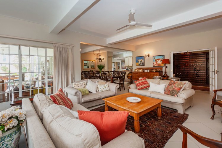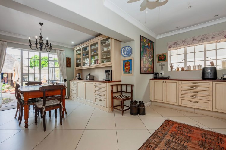 Additional features include: a long driveway, three garages, ample guest parking, a spacious housekeeper's cottage, borehole, built-in bar, gas fireplace in the lounge, and a walk-in refrigerator.