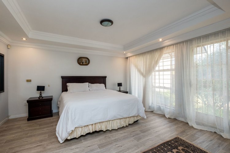 A Bargain not to be missed! Embrace a life of sophistication with a five-split level modern home with souring pressed ceilings and enchanting open concept living spaces. First Level - Includes three spacious bedrooms with BIC's, the main being an en-suite and a walk in closet with two full modern bathrooms that you can call your safe sanctuary. Second Level - A spacious dining room with underfloor heating and a fully fitted masterpiece kitchen adorned with custom cabinetry, granite tops, top of the range appliances and a separate scullery with a pantry. Third Level - A light filled entrance hall opening up onto an enclosed balcony with a built in Jacuzzi and spectacular panoramic views over the entire Horison. Fourth Level - A sunken TV room with high pressed ceilings and the fourth bed with BIC's. Fifth Level - A spacious, elegant and serene Lounge with a combustion fireplace that heats the entire property on those cold winter days, also includes a guest toilet. The 5th bedroom has a sliding door leading into a massive beautiful landscaped breathtaking garden, The property has a double automated garage with a second level storage room and a parking bay for two more vehicles. The staff cottage has a separate bathroom. The borehole supplies clean water to the entire property. The property is also secured with electric fencing and within a boomed off estate. It's conveniently situated in close proximity to schools, malls, restaurants and highways. Make your appointment with me today and also find out about special buyer benefits.