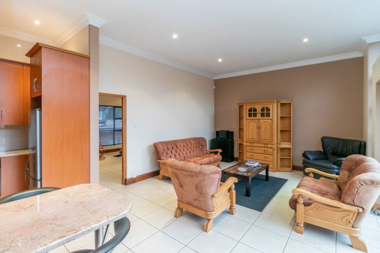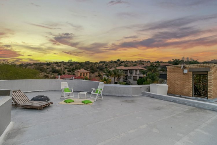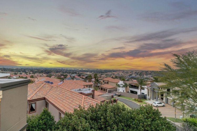 In an official enclosure with built access control, birdering Eco, this three-level face brick home is situated in the hills of The Crest, an exclusive lifestyle estate, offering a sense of openness, abundant light, and an entertainer's dream. Perfectly positioned in a cul-de-sac, you enter the property through elegant double gates, with a mural wall on the left leading to Villa Du Bois. The home provides ample parking space for clients, family, and friends.
